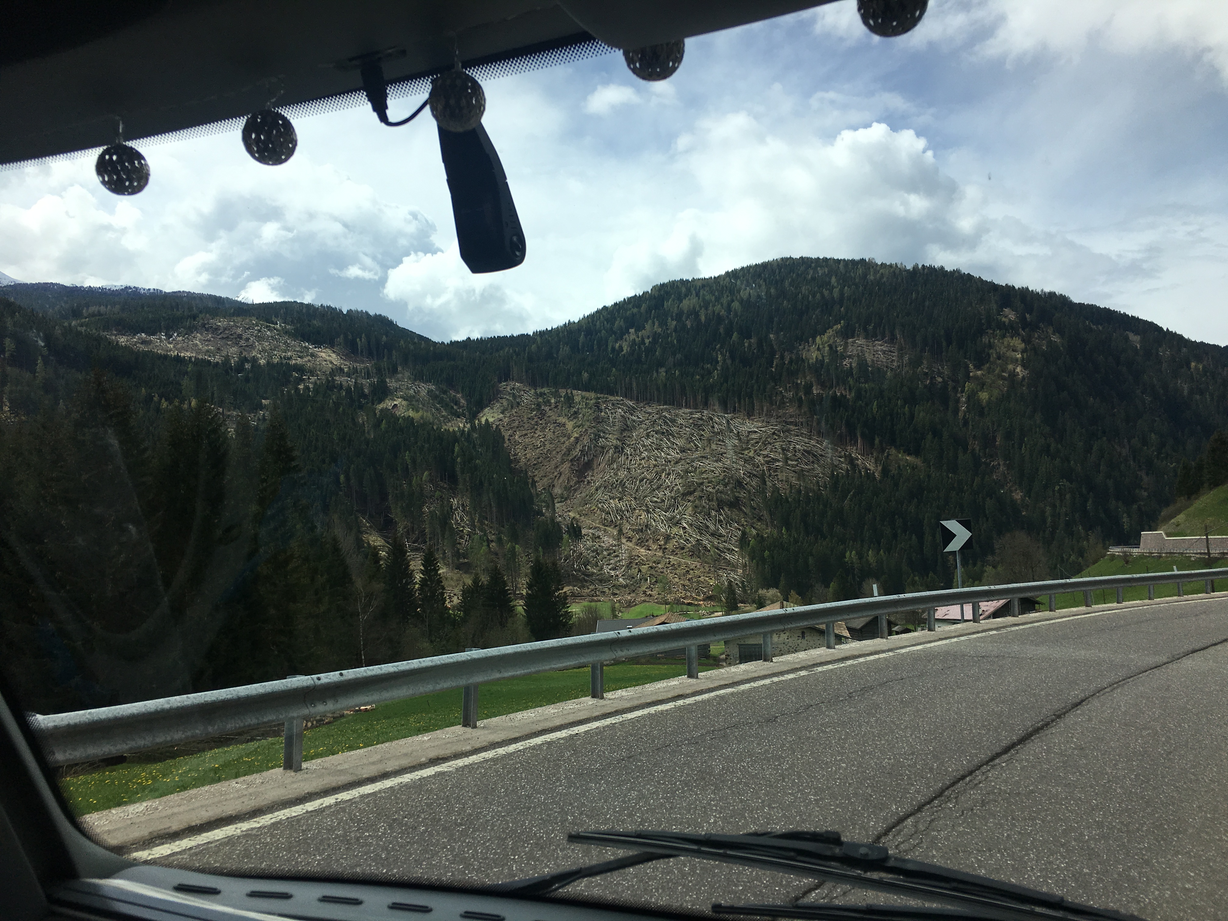We had seen so many fallen trees recently that we wanted to find out why, so we used this afternoon to do some research. The swathes of fallen trees across the hillsides are far in excess of anything we’ve seen before. Storms, snowfall and avalanches will always cause some trees to fall, but in October 2018 there was a particularly violent storm. It’s the sort of news that gets a single mention in the UK but then is overshadowed by Brexit. The storms hit northern Italy and caused significant damage on the coast with harbours destroyed and Venice flooded to it’s second highest ever level. In the Dolomites the winds caused massive damage to trees with one newspaper article estimating that 14 million trees were felled. It must be a good time to be a lumberjack and a bad time to be a timber merchant. Obviously the priority was to ensure that people were safe, services were restored and transport routes were open. Clearing the walking and biking trails for summer tourists must have come a long way down the list, but now that the spring is here there is a lot of activity trying to prepare this tourism dependent area for summer.