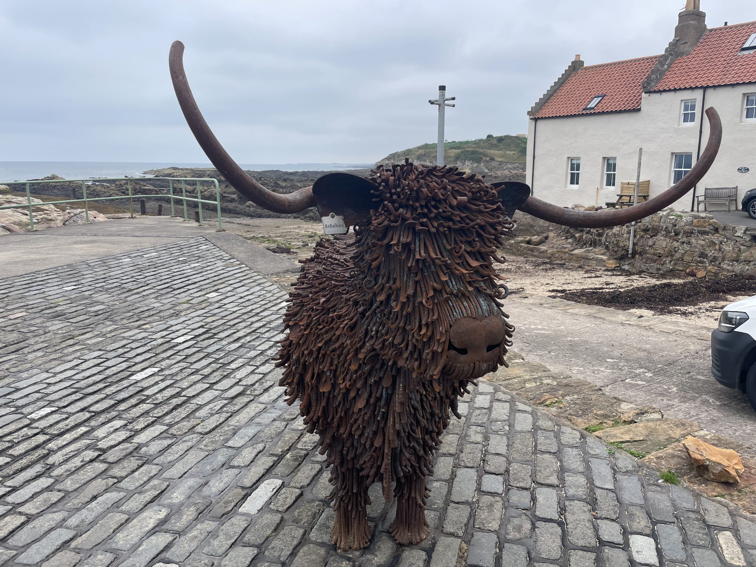 We’d originally discounted Pittenweem as a stopover because it only has three designated motorhome spaces. After having to wait for a space at Elie I was sure that it would be impossible to get one where they are in such short supply. But on our walk we had noticed that the car park was almost empty, so maybe everyone thought the way we did. Certainly everyone seemed to have flocked to sandy beachfront Elie and forgotten cliff-and-harbour Pittenweem.