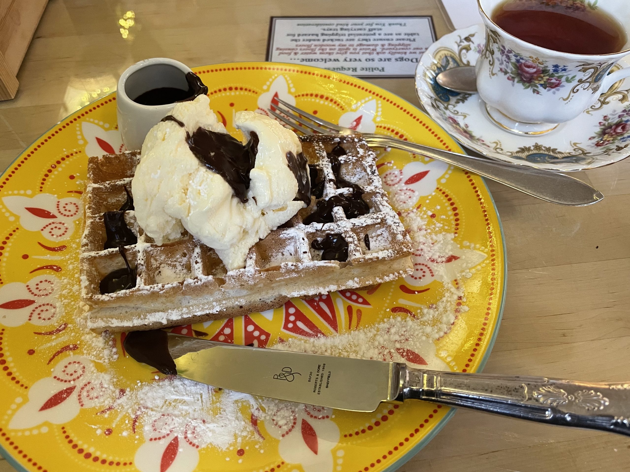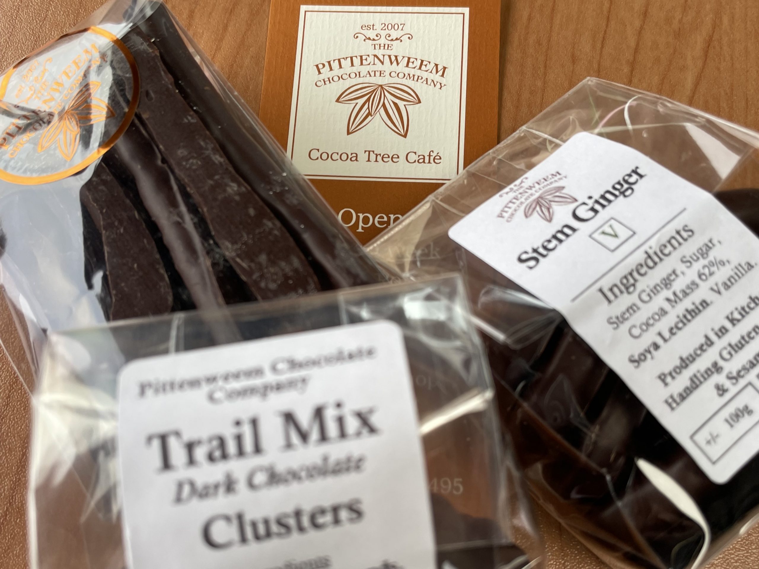 After the secret bunker we needed a bit of a lift, so we parked up at Pittenweem (no other vans in evidence) and wandered around the village, eventually making our way to the Cocoa Tree. This cafe and chocolatier served us delightful light, fluffy and slightly crispy waffles with a dark chocolate sauce – just luscious. We just had to buy some treats from the chocolatier to take away with us. She doesn’t make large batches so if you are in the area then pop in. The chocolate gingers and crystallised orange peel were lovely, but the trail mix, like mini Florentine bites, was our favourite.