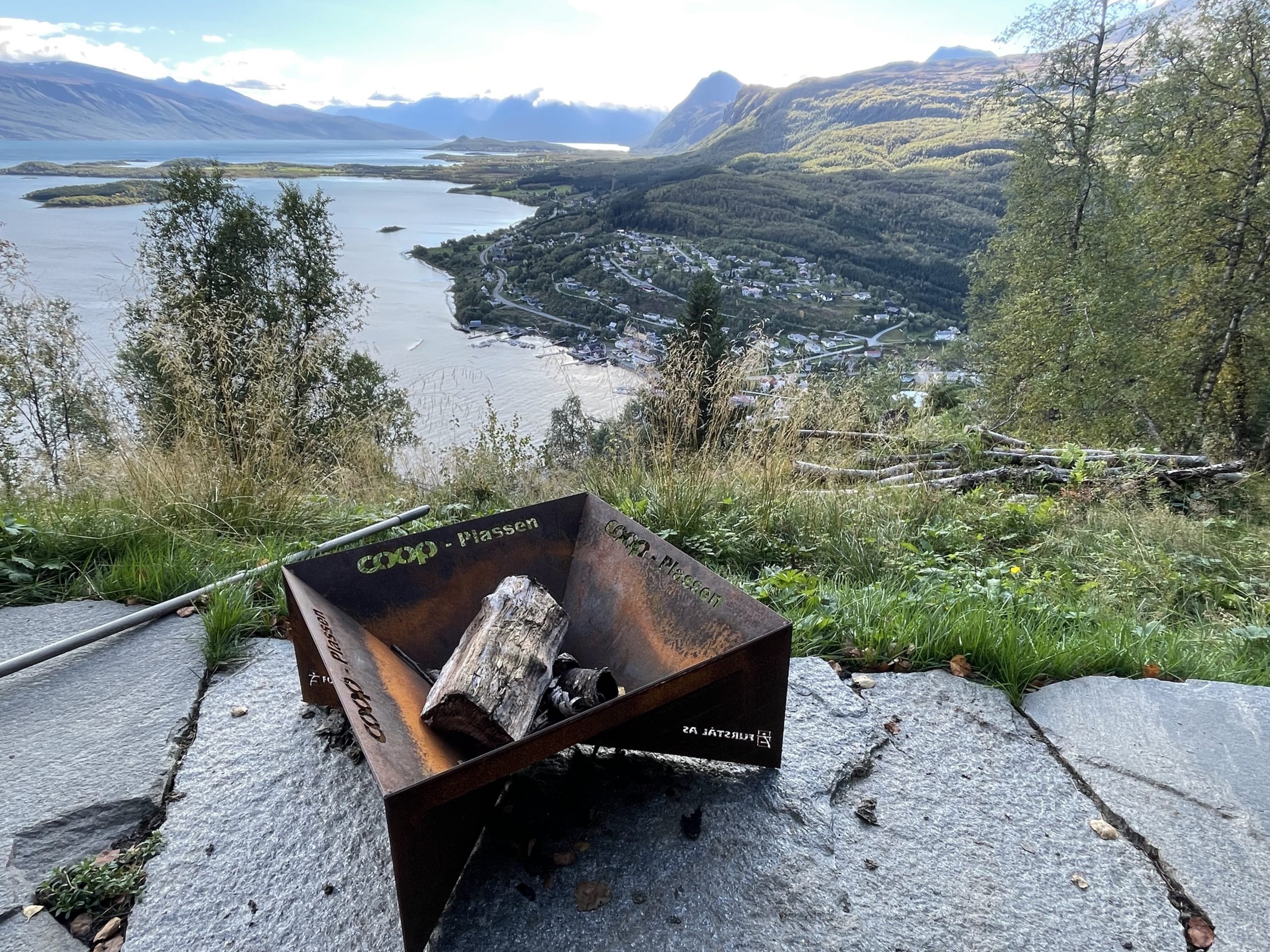 Our first experience of these steps was nothing but positive. We quickly ascended the path and found the start of the steps which took us swiftly uphill with a helpful count of the number of steps climbed. Rest areas and seats were strategically placed along the route. Some of the seating areas even had firepits available. We could imagine climbing these stairs on a long summer’s evening and sitting around a fire in the twilight with the magical views of the mountains and the sea.