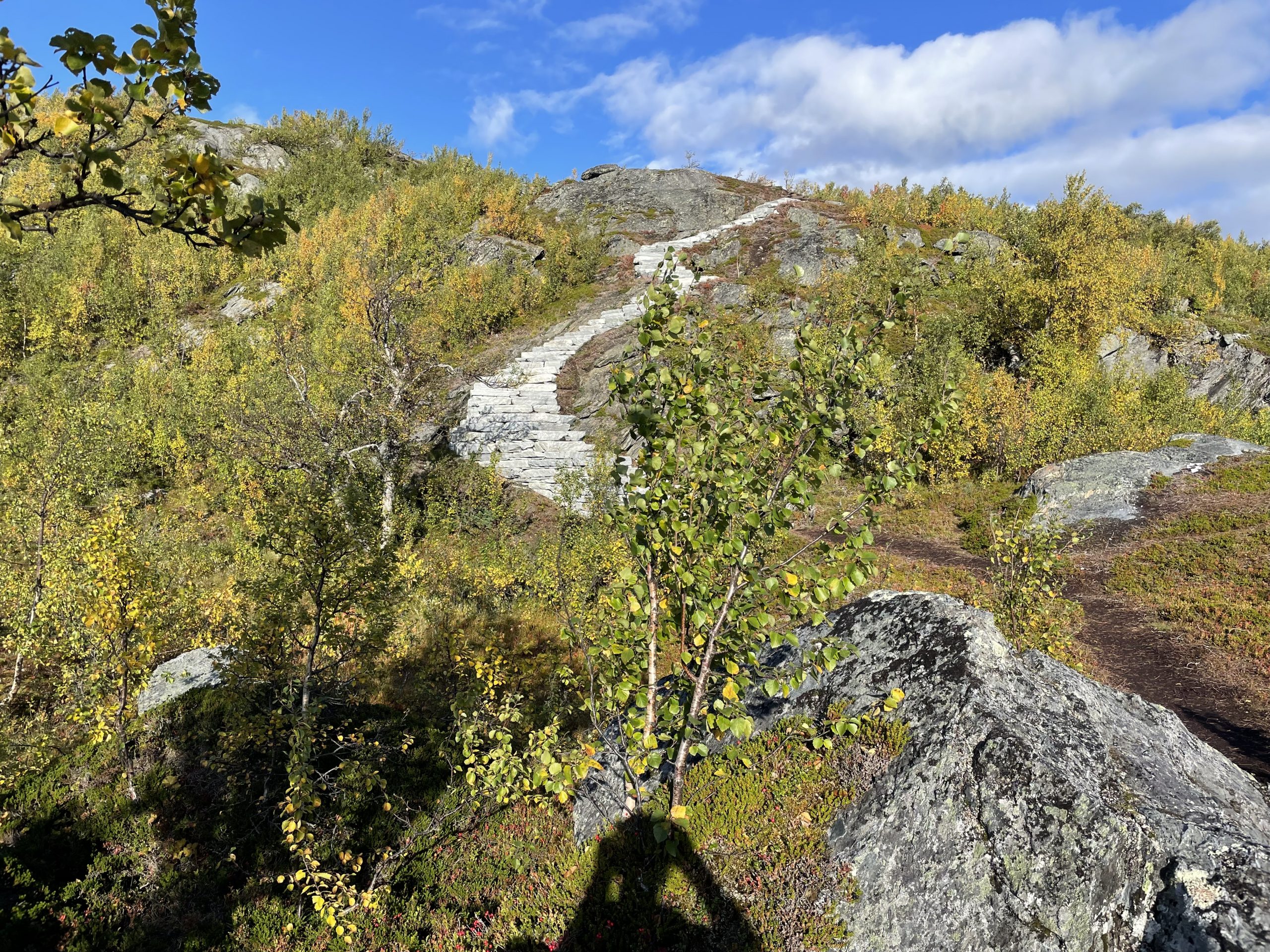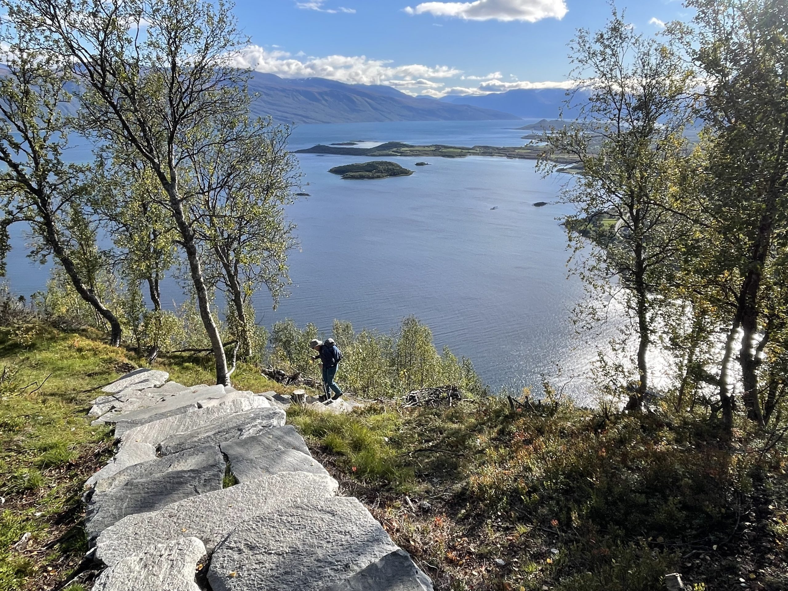 On arrival in Lyngseidet we made our way immediately to a small parking area on the side of the road. After having a quick lunch we crossed the road to climb the Lyngentrappa. This is one of a number of ‘Sherpa Steps’ that can be found in Norway. The stone staircases have been built by craftspeople from Nepal who have been recruited specifically for their mountain path construction skills. The staircases solve a number of problems for the mountain paths of Norway. They reduce the erosion caused by thousands of tourists who want to experience the natural wonders of the country, they improve access to the extremely steep paths, making them accessible to many more people. This, in turn, reduces the pressure on mountain rescue services in Norway who see high volumes of call outs for unprepared tourists attempting routes that are beyond their capabilities.