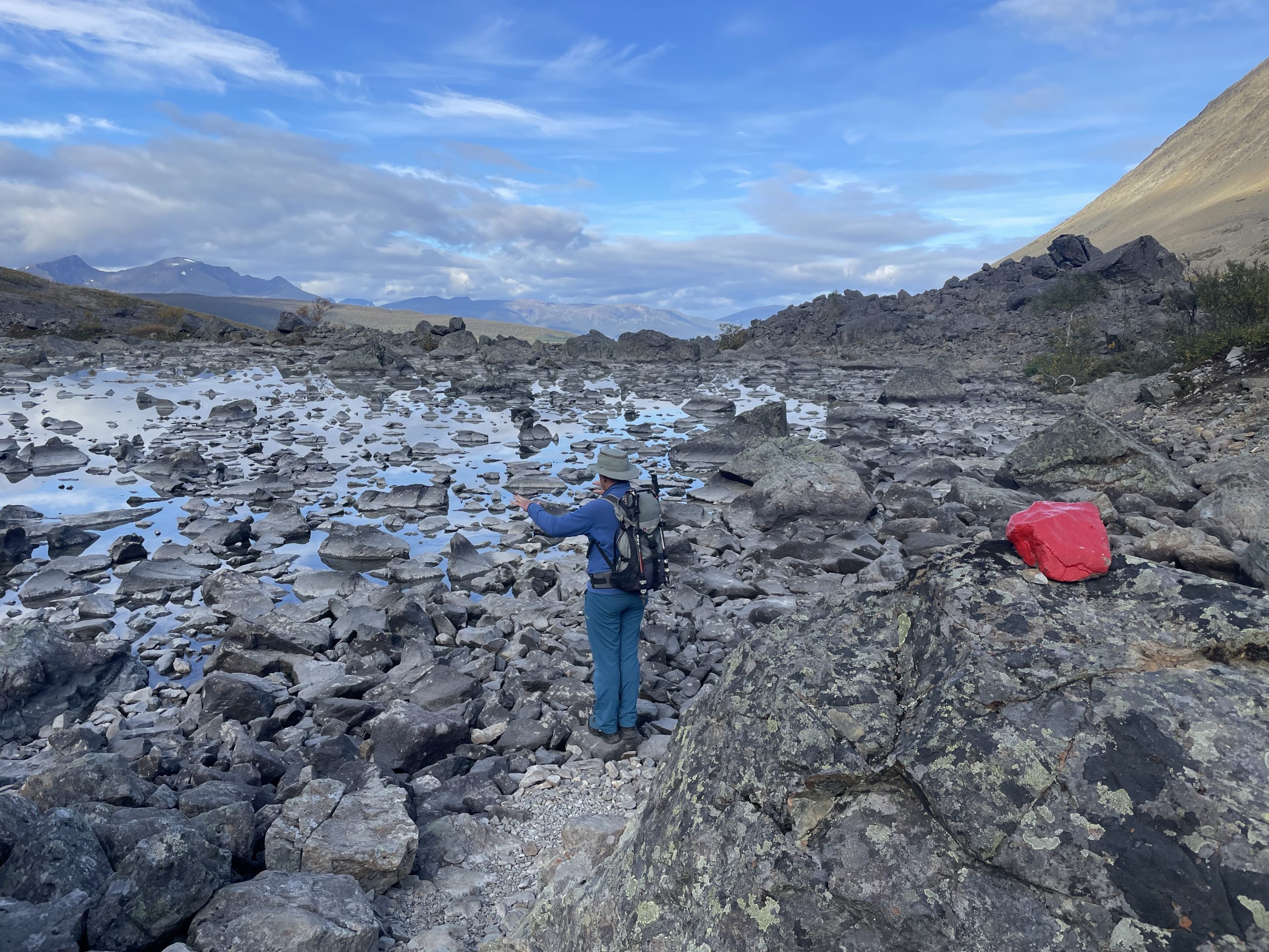 The first part of the walk was through spindly trees and across marshy river banks but very quickly the landscape changed to a rocky moonscape. We crossed rocks and boulders, following the clues that we were on a path; slightly cleaner rocks worn clear of lichen by passing feet and red paint splodges that were much easier to see on the way back than on the outward journey.