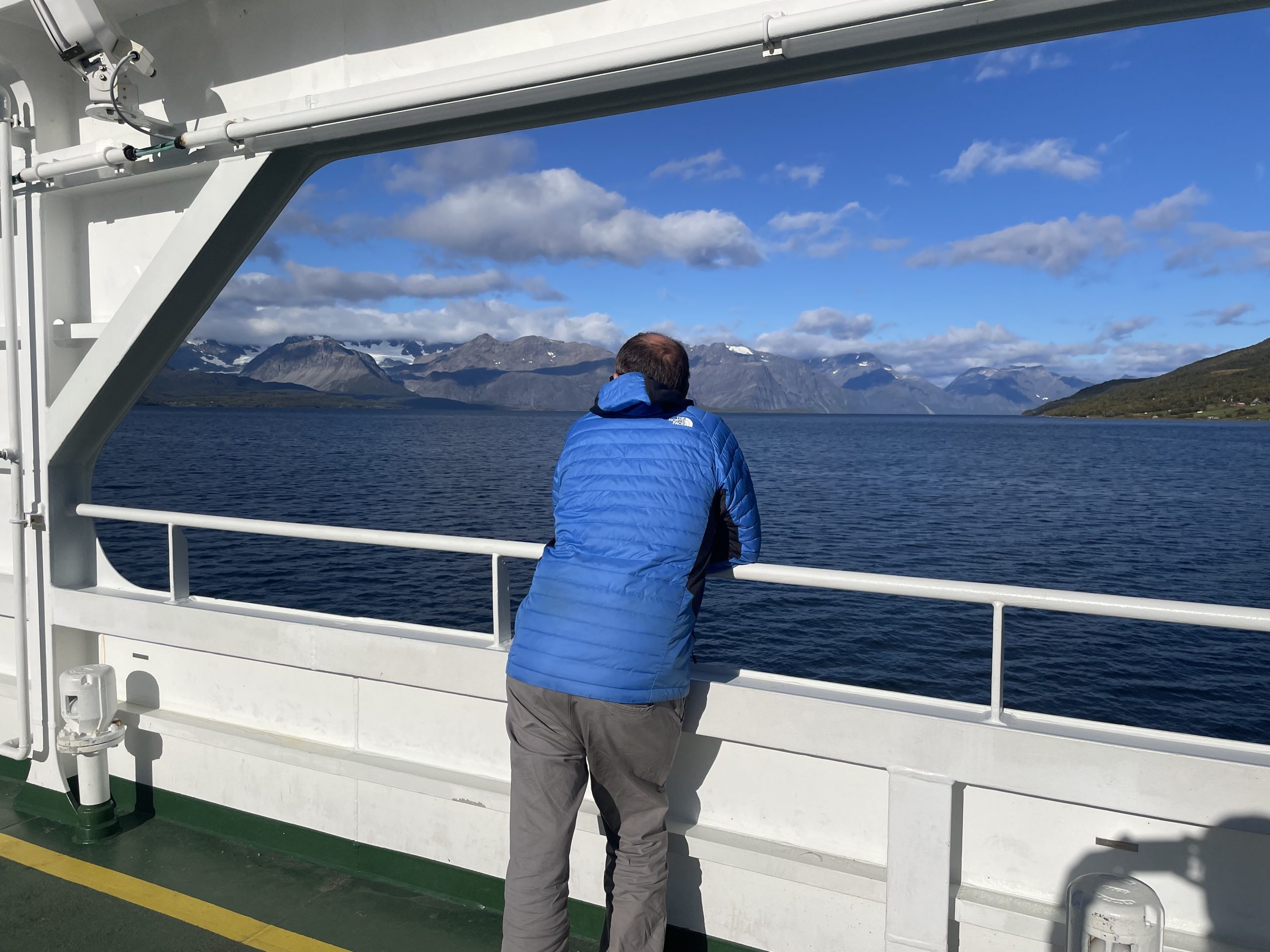 We parked in the queue at the Olderdalen terminal with a couple of hours before the next crossing. Paul immediately grabbed his fishing rod, joined after a few minutes, by the Finnish man from the car in front of us. I went to buy ice-creams from the cafe to enjoy in the sunshine.