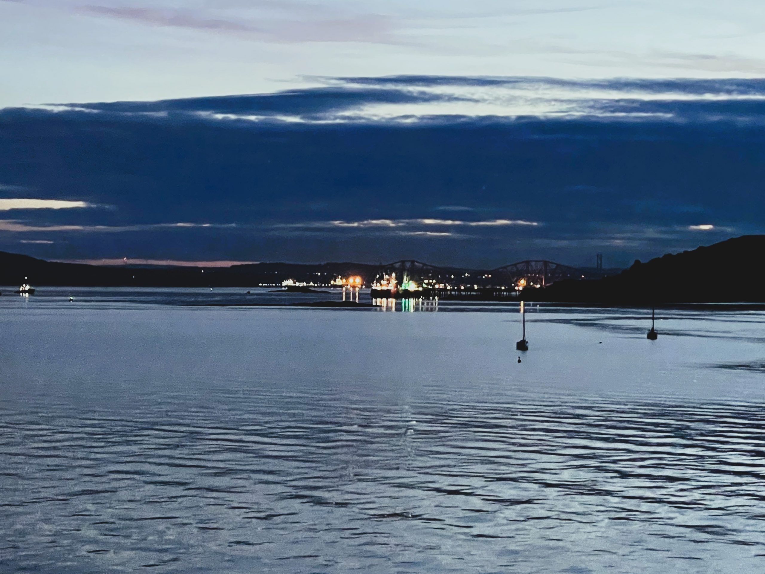The Forth Bridge is well known as a decorating challenge, but there are actually three crossing points and we were on the modern Queensferry Crossing rather than the rail bridge that, according to the saying, needs constant repainting. I was still working in the back of the van so didn’t really have much opportunity for gawking but did manage to snap a couple of photos.