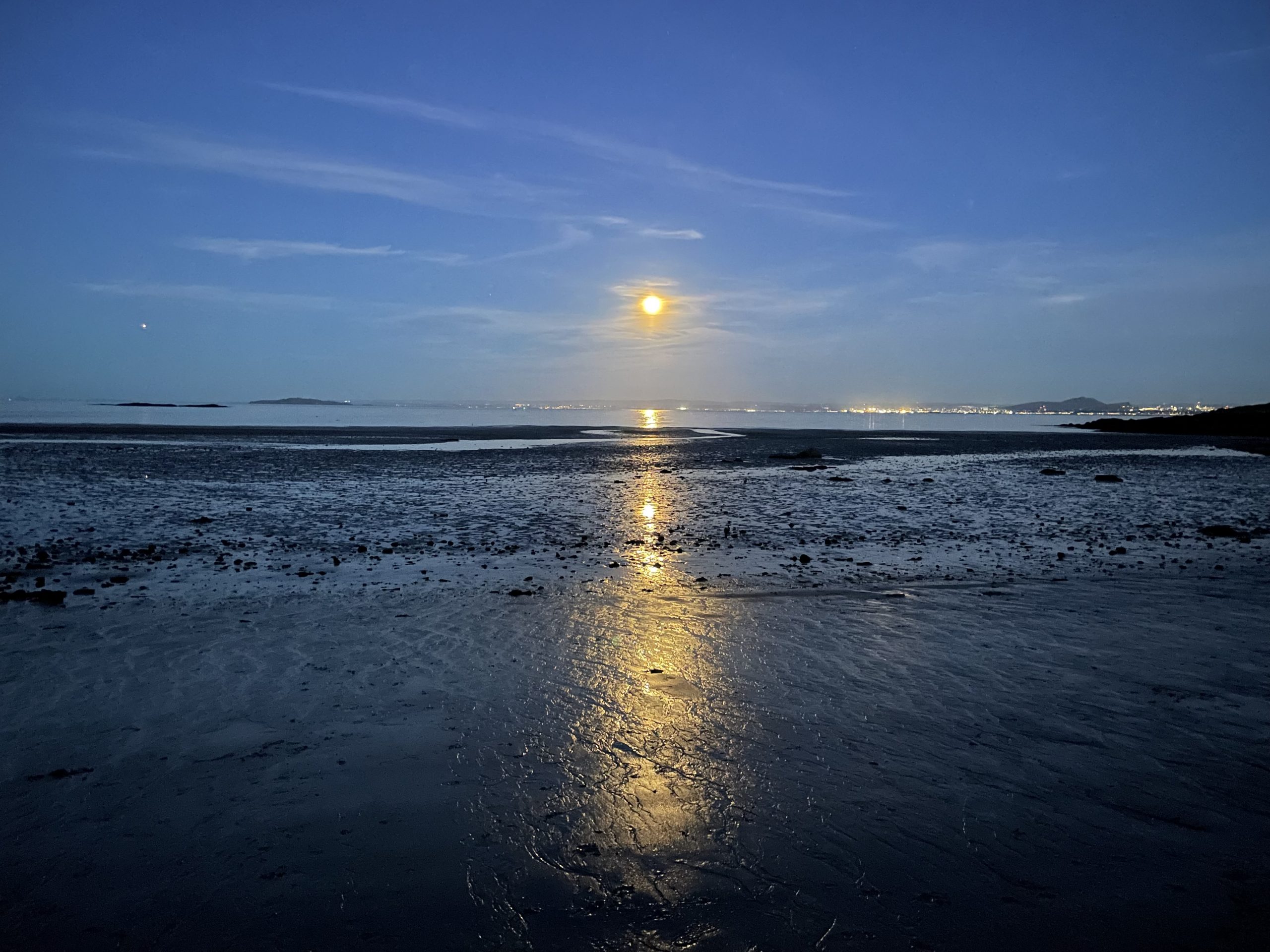 When night had fallen we went back up to the headland to see the harvest moon shining out over the sea and the lights of the Forth bridges in the distance. The following evening we tried to capture the moonrise. Sadly the predicted aurora didn’t come to anything, but we’ll keep our fingers crossed for a sighting before we return home.