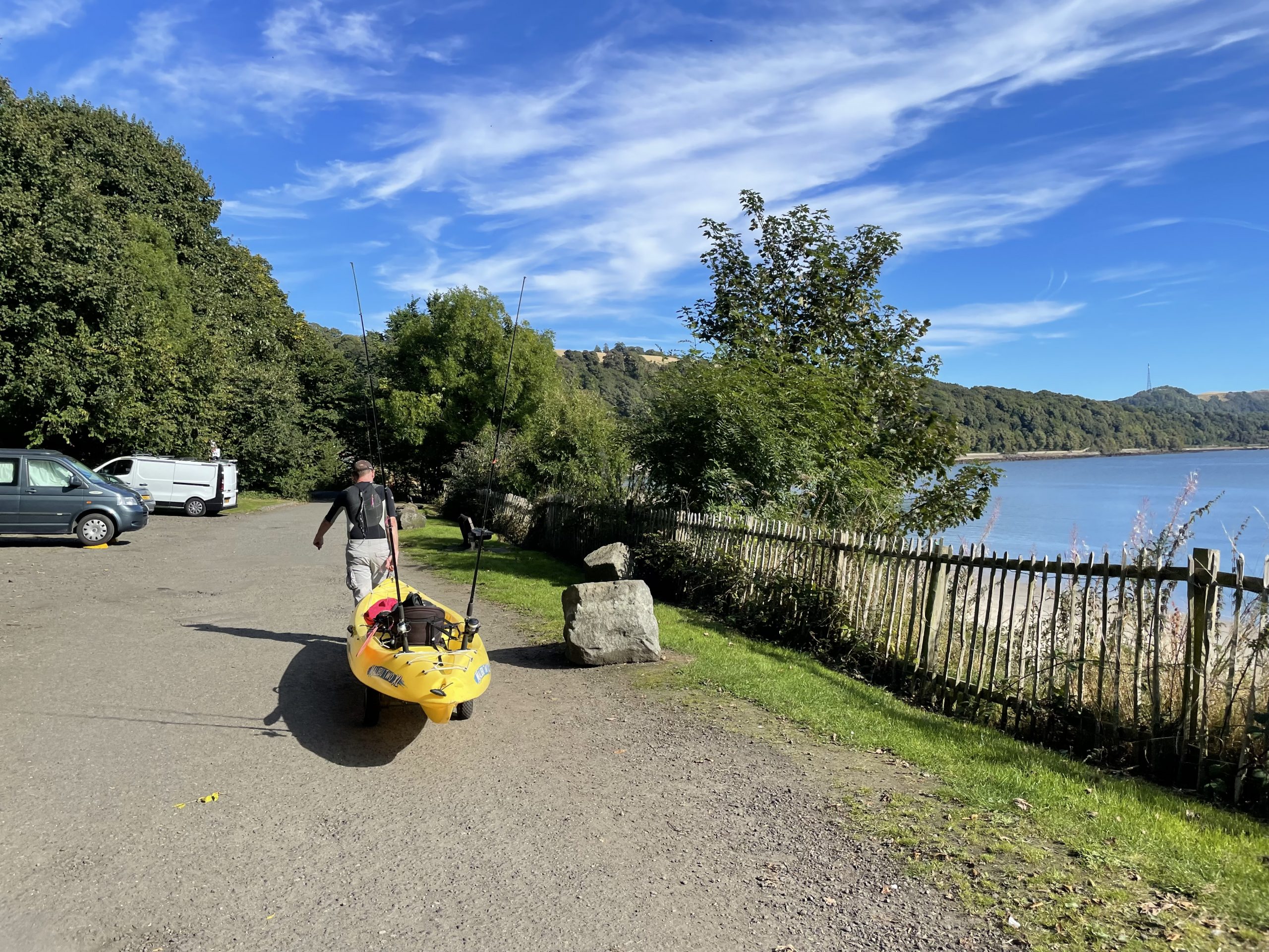The following day I had to work again so Paul dropped the kayak off Bertie’s roof and took himself out for a day of fishing. Alongside a multitude of small fish (too small to keep), two mackerel were caught, but one escaped. Never mind, we still had a small mackerel starter for our supper. Paul had spent many hours battling the fierce tidal currents in the firth but to no avail. It was a good job we weren’t relying on our foraging for dinner. My working day was accompanied by the sounds of people enjoying the busy beach. Obviously many locals were making the most of such lovely weather before autumn sets in.