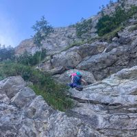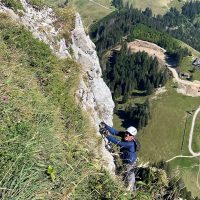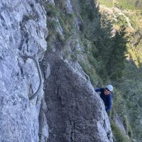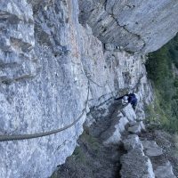 This was a very different via ferrata than Charmey. A lot more of the hand and foot holds were on rock rather than staples, and there was a lot more traversing across the mountain. The little ‘fun ‘ features weren’t present, but there were more route finding problems and a couple of minor overhangs that tested my confidence in my own strength.