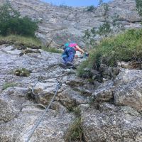 With a bit of heaving and shoving we made it out of the woods and arrived in a closed restaurant where we could help ourselves to outside seating in the shade and drink as much water as possible while admiring the view and checking out the following day’s via ferrata.