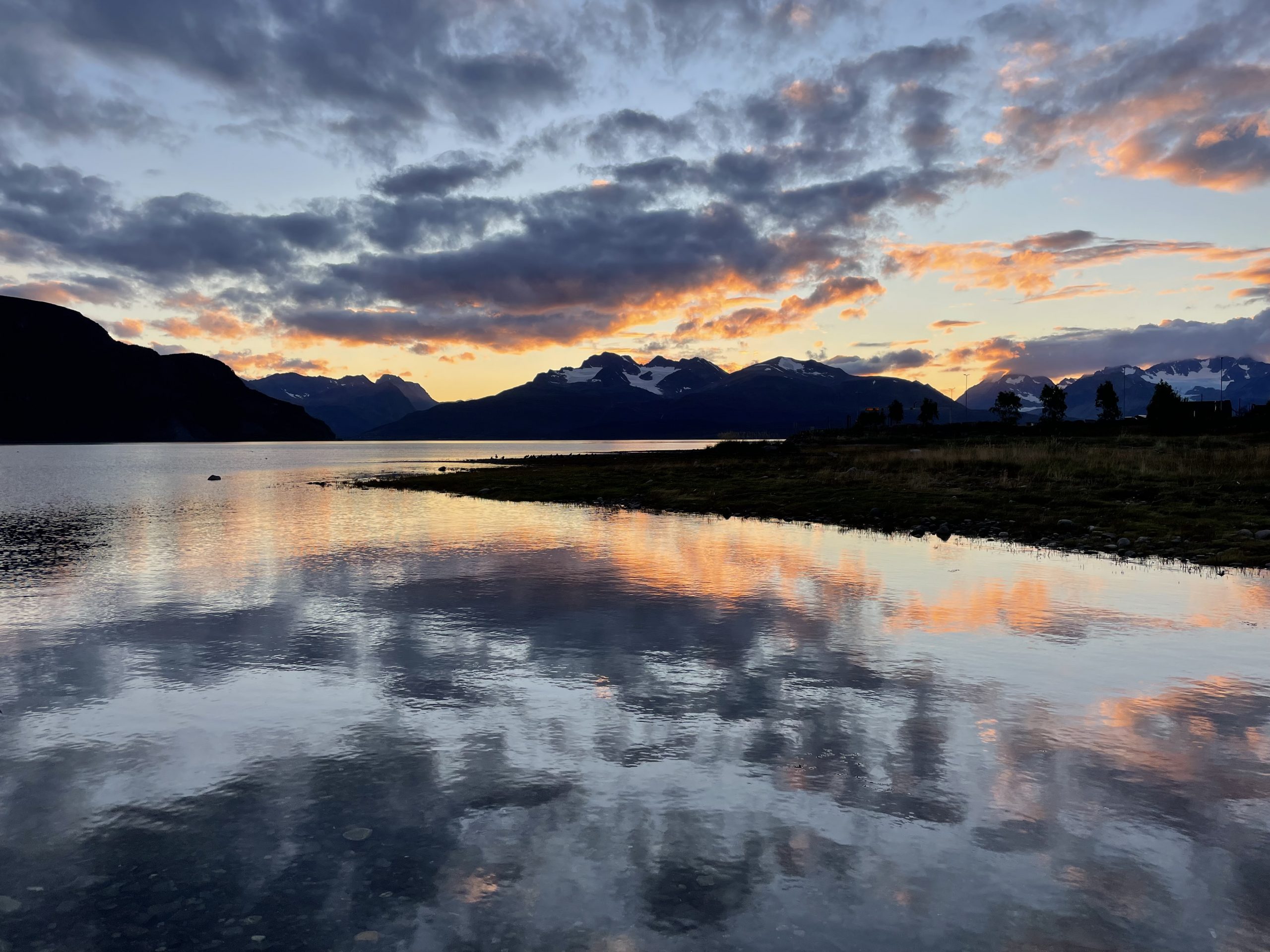 So instead of getting straight on the ferry we tried to park up in Olderdalen to chill and plan without any pressure. We drove into the village but couldn’t find a car park where we were allowed to stay so drove back out and found a bit of waste ground by the river suggested by Park4Night.