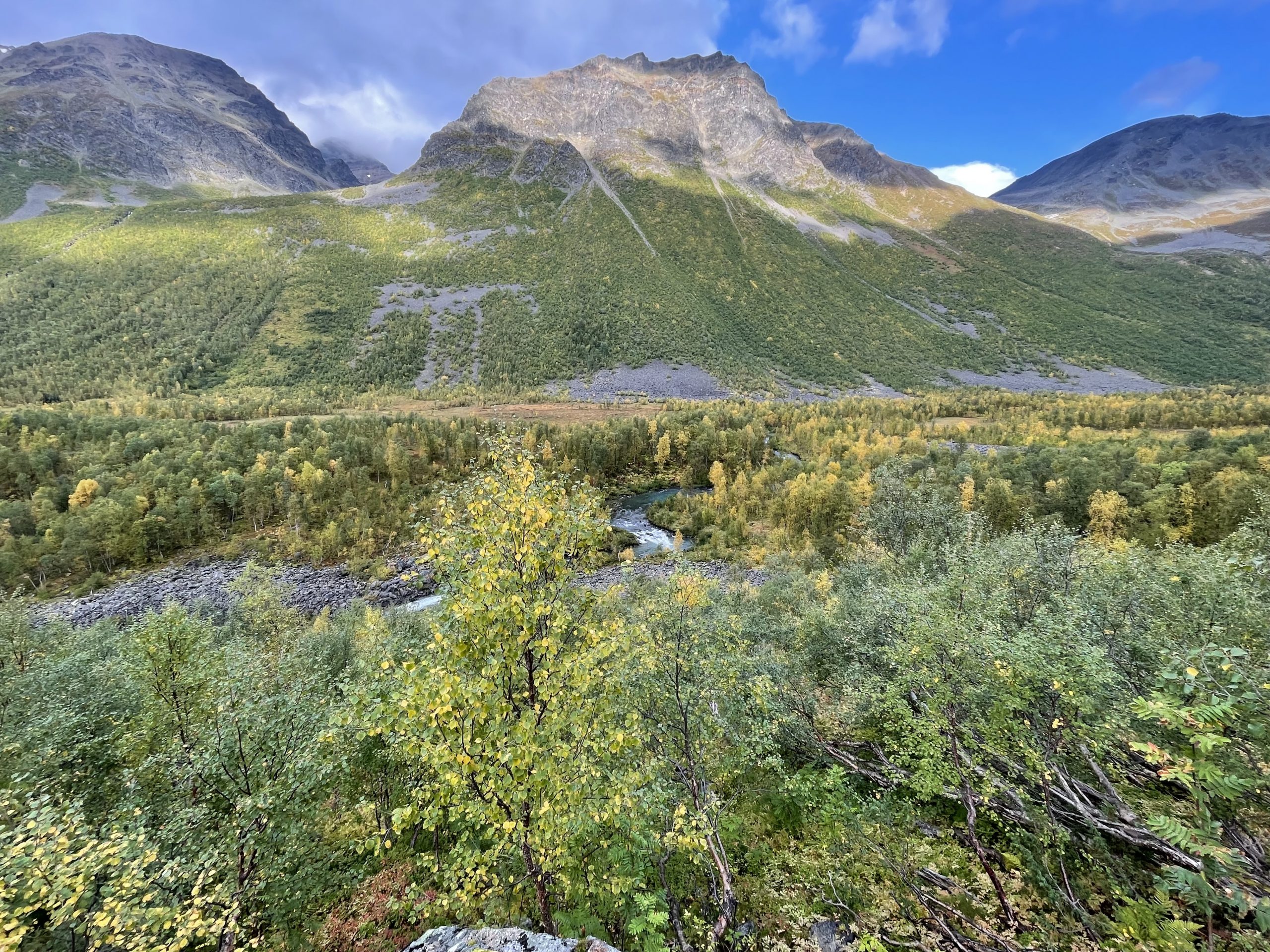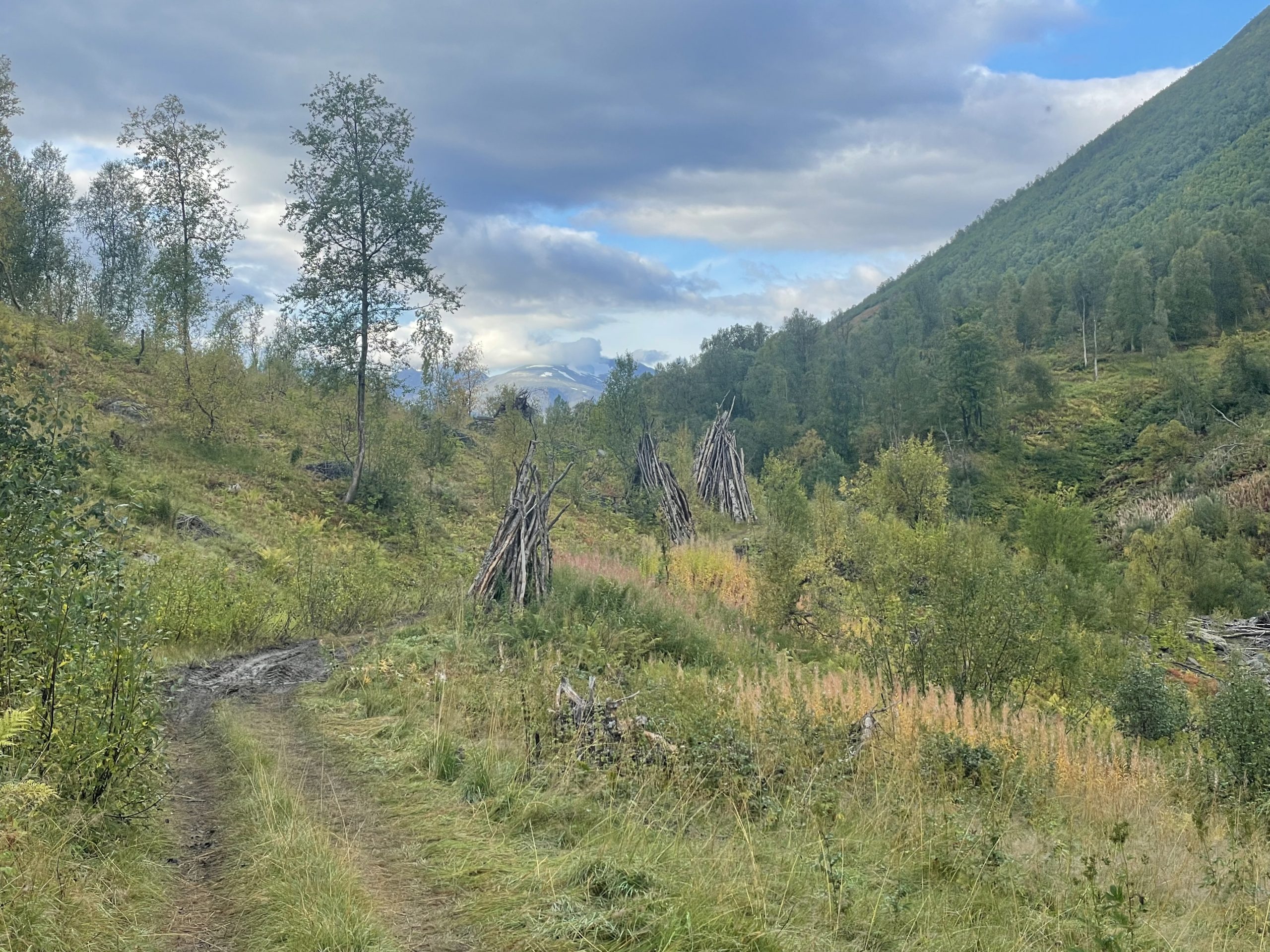Higher up in the valley we got some good views over the river and back down the valley. Some enjoyable single track led back down towards the river, but once we were back over the river we were into marshy territory once again. We decided to take the path of least resistance back to Olderdalen. We got slightly mired trying to cut across to a track, but once there we were down the valley back to the church where the path had started in no time. All in all not the most successful bike ride but one that we might have found more enjoyable if it had been a little drier.