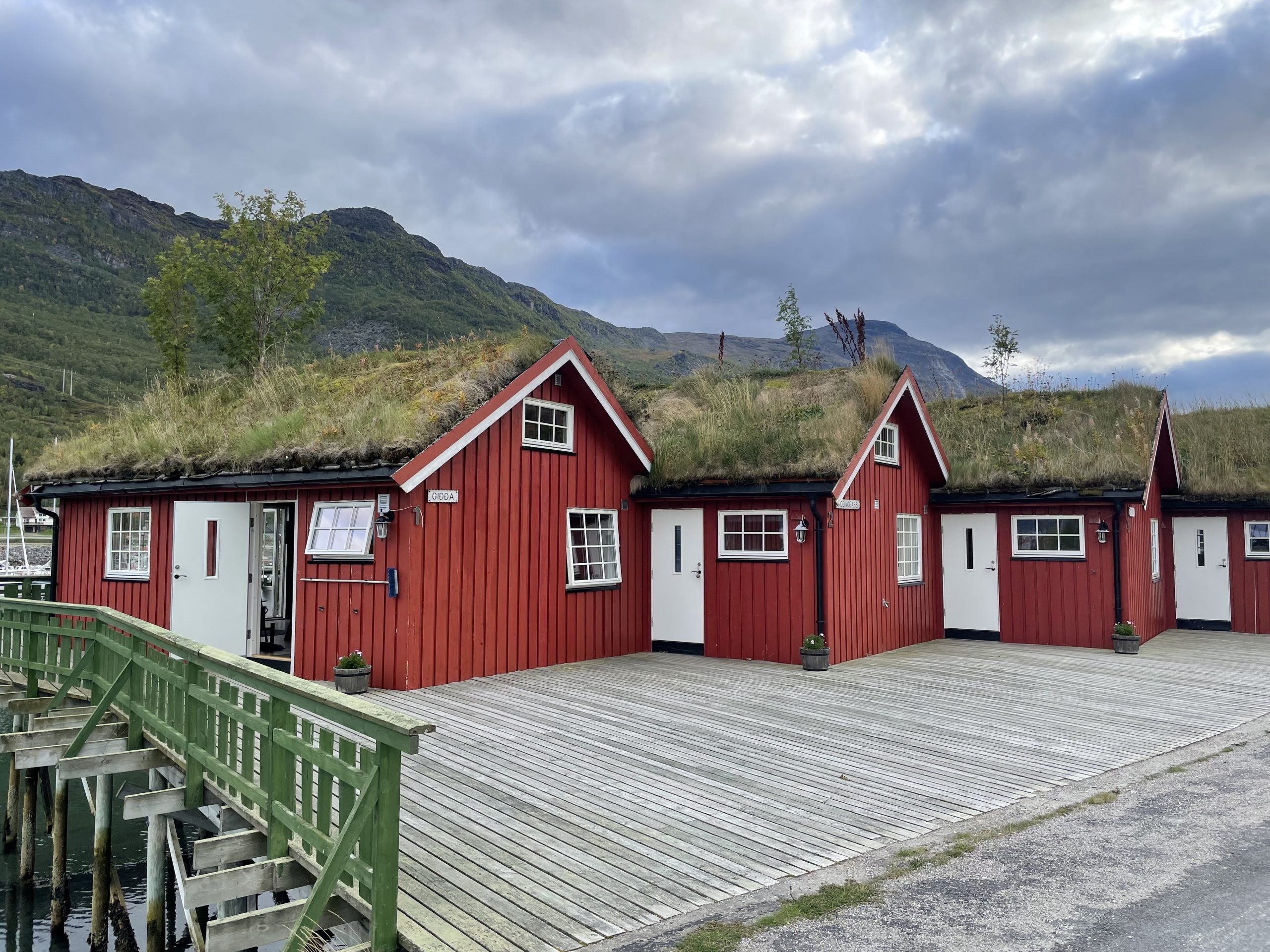 We went for a walk down to the harbour where several red rorbuer (fishing huts) with living roofs lined the edge of the marina. Once we’d explored Paul disappeared off to do some fishing while I went back to finish the laundry and do a bit of work. The fishing was a success, we had fresh cod for dinner and the next day, while I was working, Paul caught another cod which we filleted for the freezer. Much as we both love fish we don’t always want to eat it every day.
