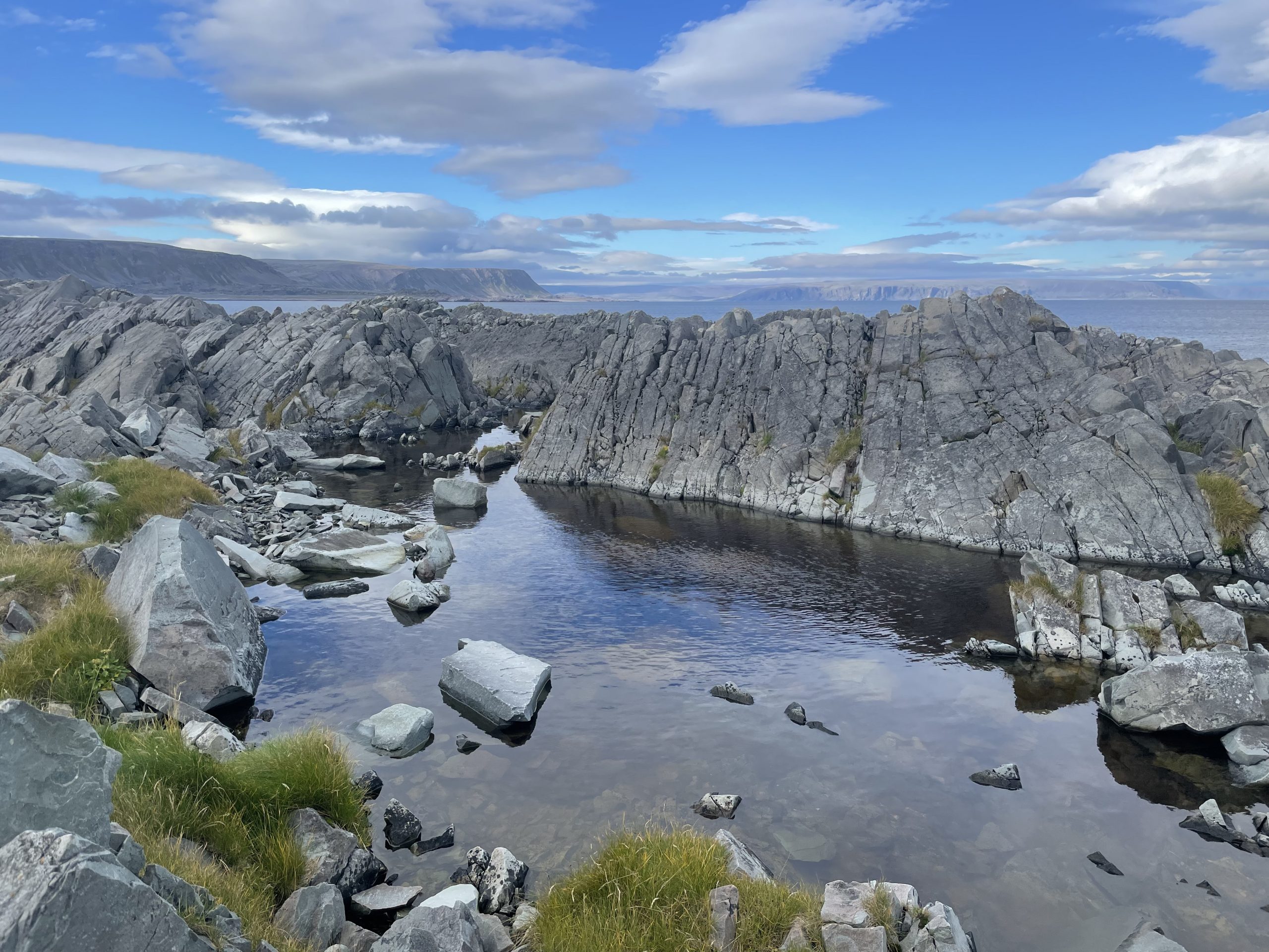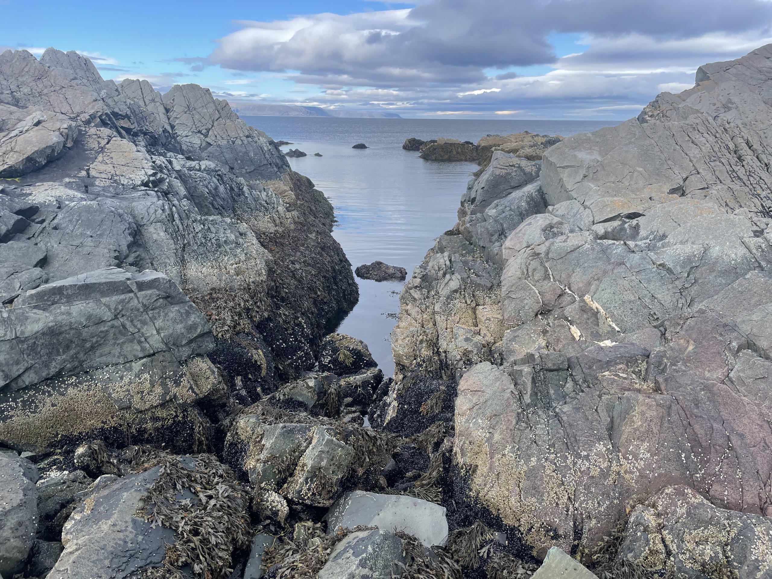 The following morning we set off to walk around the headland. A track leading away from our parking spot soon became indistinct and then rocks took over. We clambered over ranks of rock, making our way around inlets and stopping at beaches to look out to sea. In the crevices between rocks plants grew in sheltered comfort. I picked bilberries and even found a small patch of cloudberries. I don’t know what to make of the flavour of cloudberries yet. I really need to try them again as their texture was so creamy and unlike anything berry that it made it difficult to judge any other characteristics. I didn’t dislike them, but I don’t know yet if I like them.