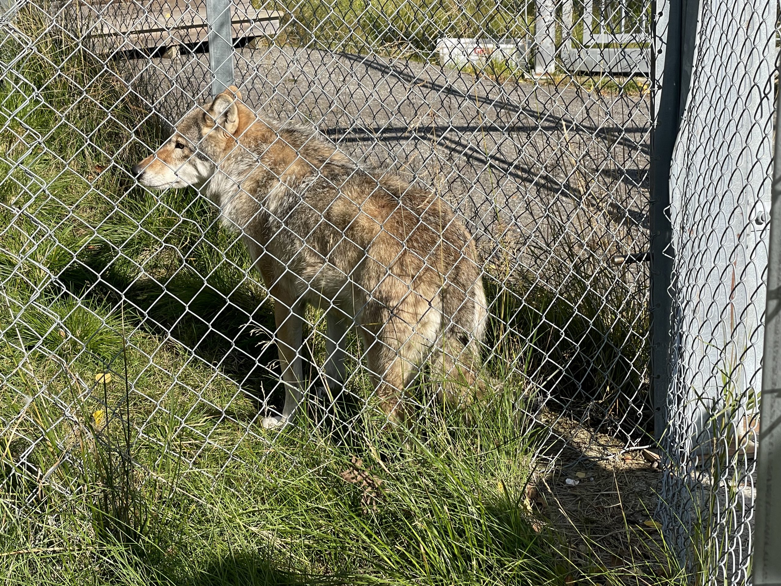 There were three wolf enclosures, one with a single wolf, one with a group of three and one with a bigger pack. It was the cubs from the bigger pack that we had seen earlier. There was a marked difference between the behaviour of the bigger pack, who were less socialised, and the behaviour of the other wolves who definitely had become accustomed to the staff feeding them tid-bits.