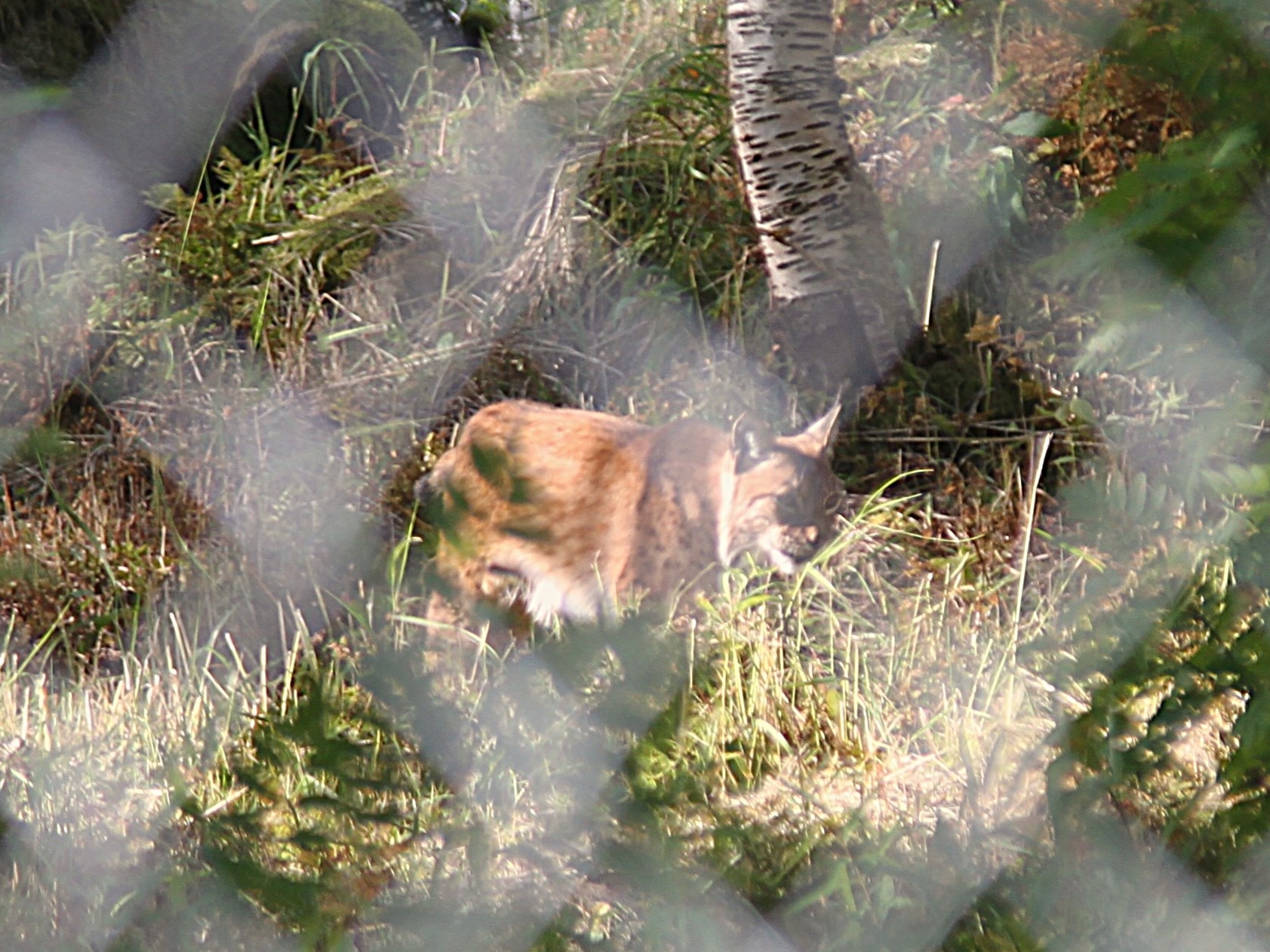 Then we made our way to the predator enclosures. Paul was the first to see a lynx, a fleeting glimpse of mottled black and russet through the trees. We watched carefully as it prowled along the slope above us, turned to give us a brief stare and then disappeared like the Cheshire Cat. An utterly magical experience.
