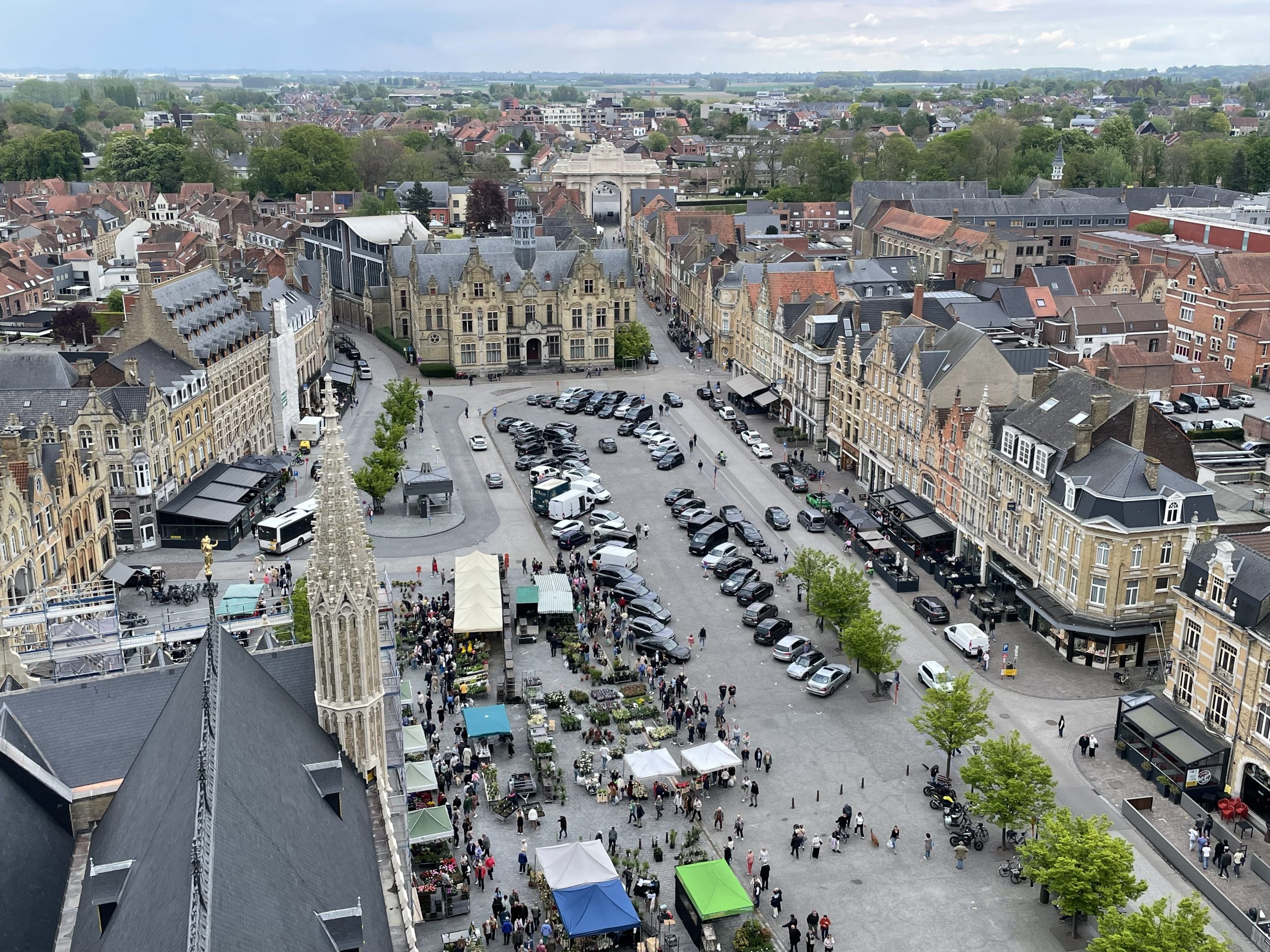 We booked a spot at Camping Jeugdstadion, a small campsite just on the outskirts of the city. They have camping pitches in a grassy area and slightly cheaper aire-style pitches on a hard surface. We went for the cheaper option as we weren’t staying for long. The campsite was in the process of refurbishing the bathrooms which looked like it would be an improvement, but they were perfectly serviceable as they were. Really the main reason for staying here is the short walk into Ypres.
