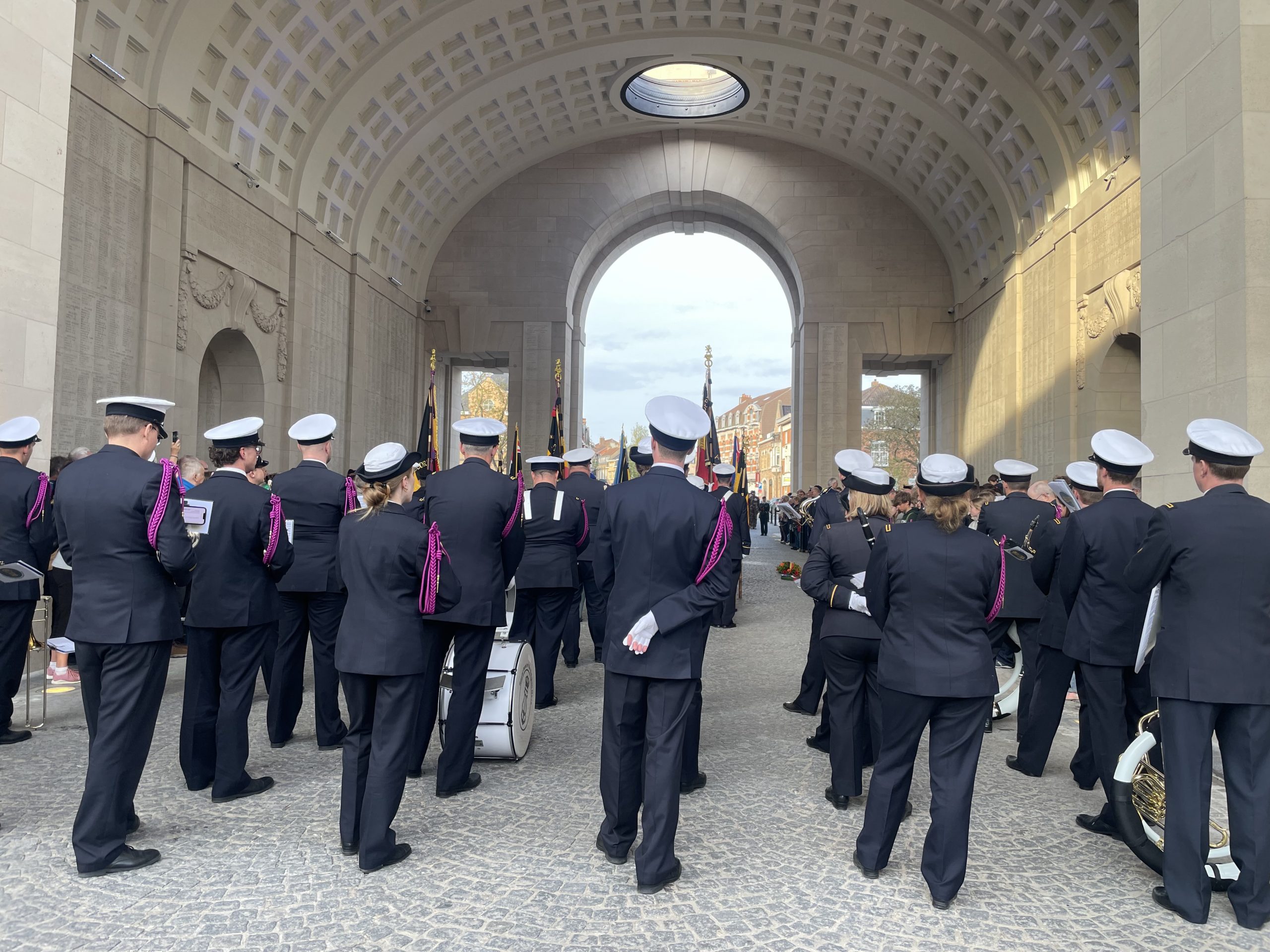That evening we made our way to the Menin Gate to watch the last post. We hadn’t really done any research and were just expecting a small parade and bugler. Maybe we should have known better, we’d already seen several uniformed groups around the town and rows of coaches along the road next to the canal. We know now that the Last Post Association website gives details of the attending groups so you can see how large an event is taking place.
