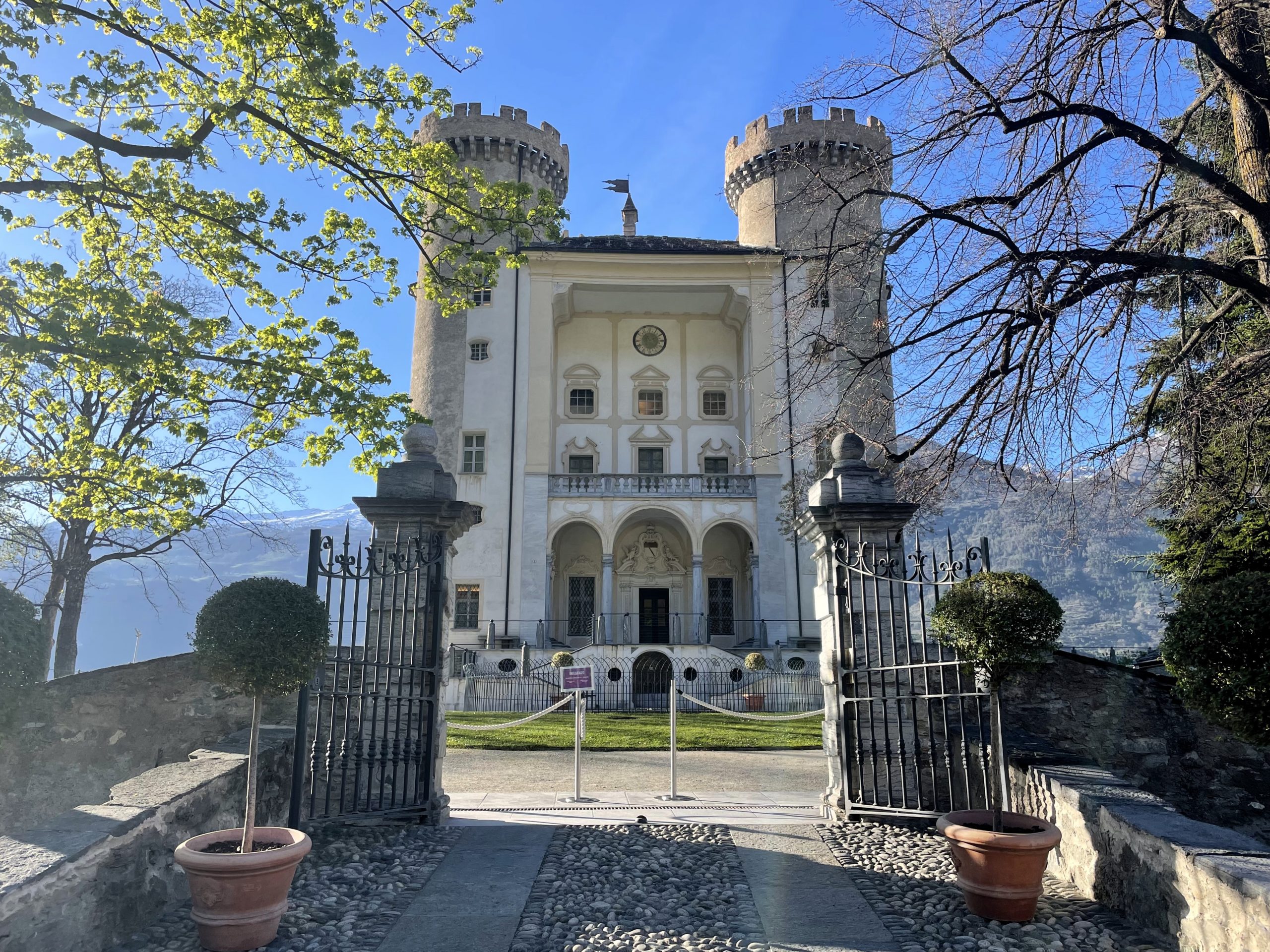 Last time we visited we noted that we didn’t make it to the castle. So our first mission was a walk from the sosta up through the town to the castle. We picked an odd route up some terracing that seemed to channel either a drain or an aqueduct. We were too late to see inside the castle, but it is open for guided tours now, all the renovations we saw happening last time are complete. Instead we walked around its perimeter taking in the 18th and 19th century modifications that have been made to the original medieval four-tower castle. It looks too symmetrical to be real, especially with the pristine restoration of the external decoration.