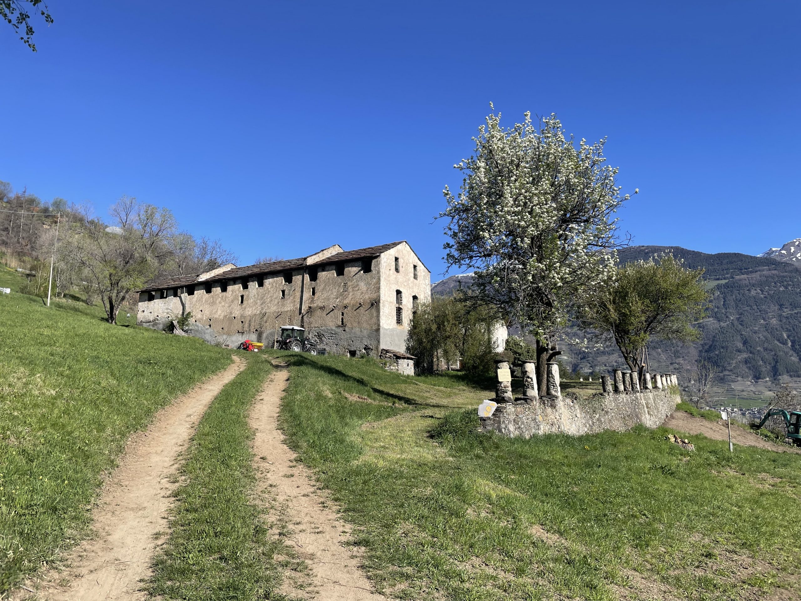 To walk back we climbed out of the other side of the village and up to the valley road which we crossed to pick up a track which followed another, modern, aqueduct. It seemed to be a maintenance track rather than an official footpath but it was an easy way to get back to Aymavilles with just a final steep downhill bringing us out at the church of St Léger.