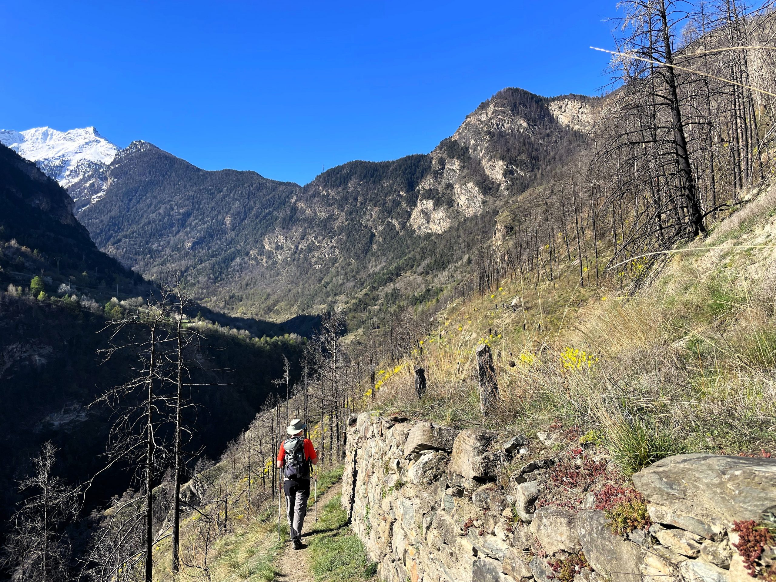 The following morning we made our way to the modern road bridge over the Grand Eyvia (the river that runs down from the head of the Cogne valley). In its lower stretches the valley is steep sided and narrow which made it possible for the Romans to build the Pont d’Aël, the objective of today’s walk.