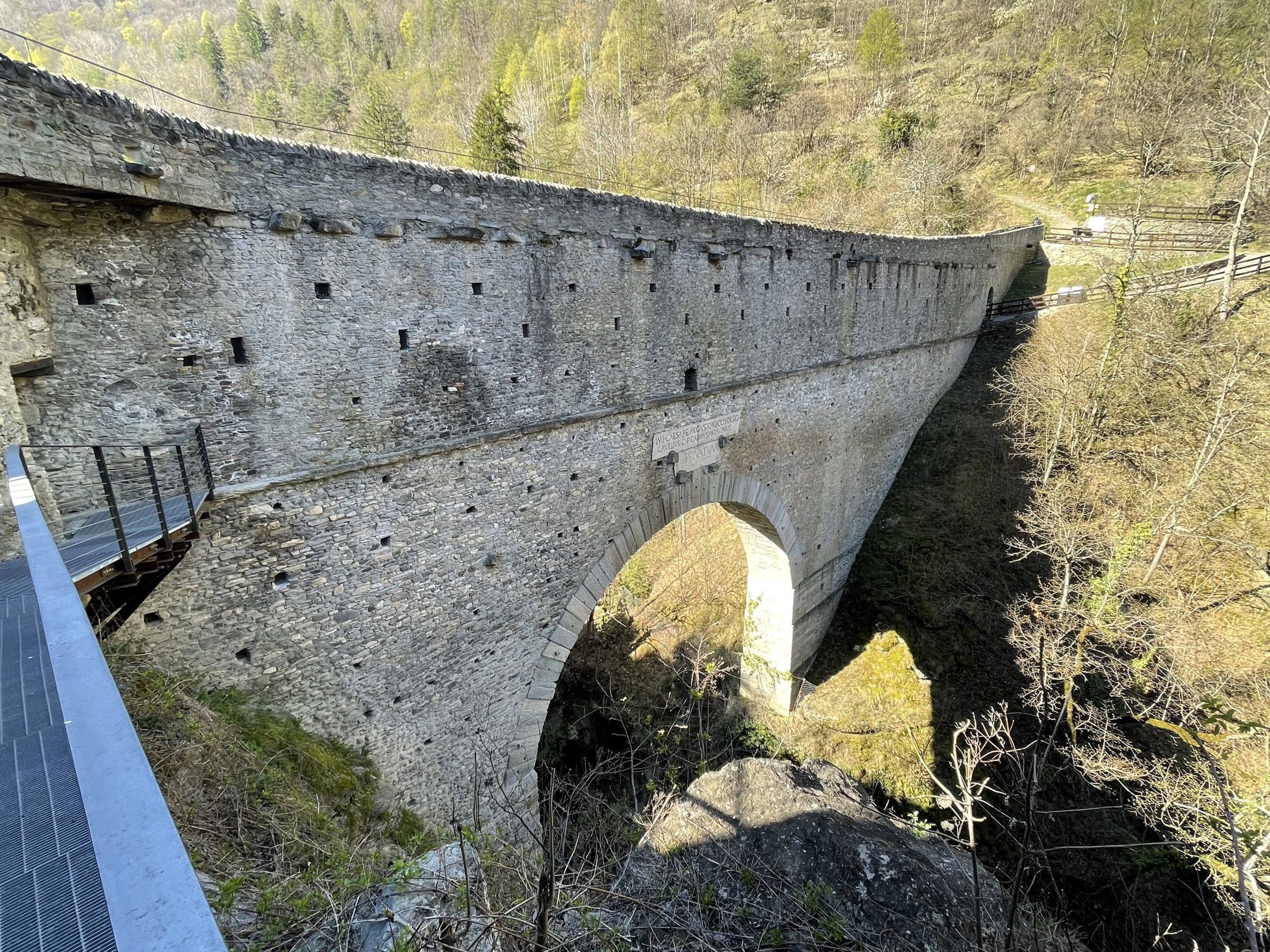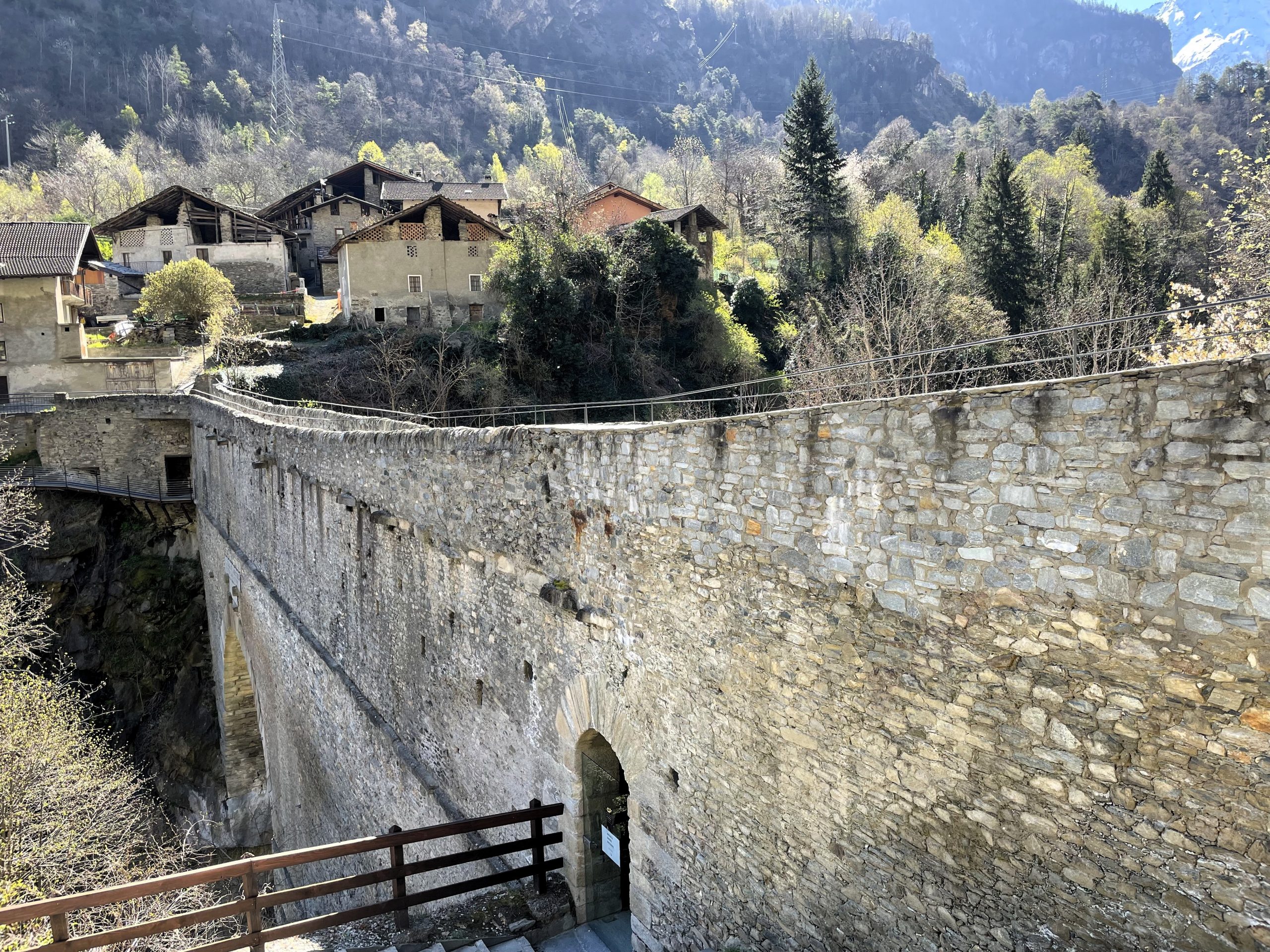 The Pont d’Ael was probably more important to the Romans as an aqueduct than as a bridge. Water was channelled from higher up the Grand Eyvia and routed down, across the river here at the Pont d’Aël and along the valley, providing water to a quarry situated somewhere between Aymavilles and Aosta. On the side of the aqueduct is the original inscription telling us that it was built by Caius Avillius Caimus during Emperor Augustus’ thirteenth consulship – in the year 3 BCE.