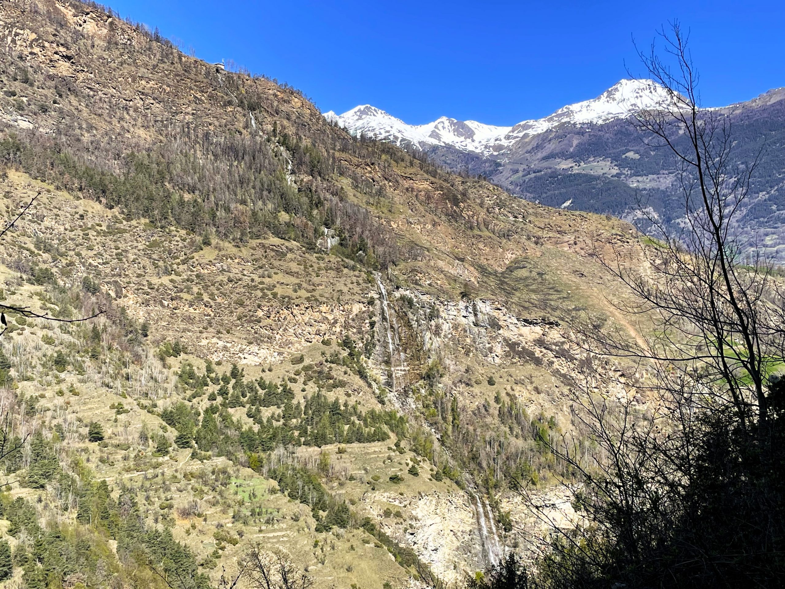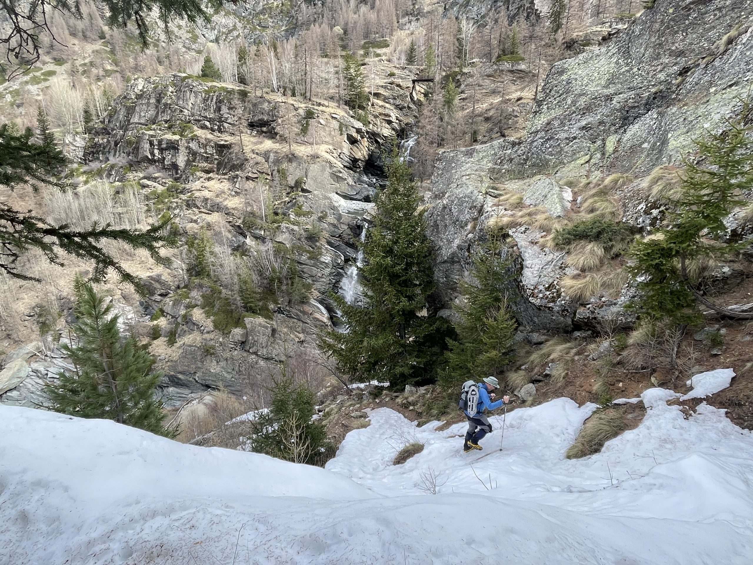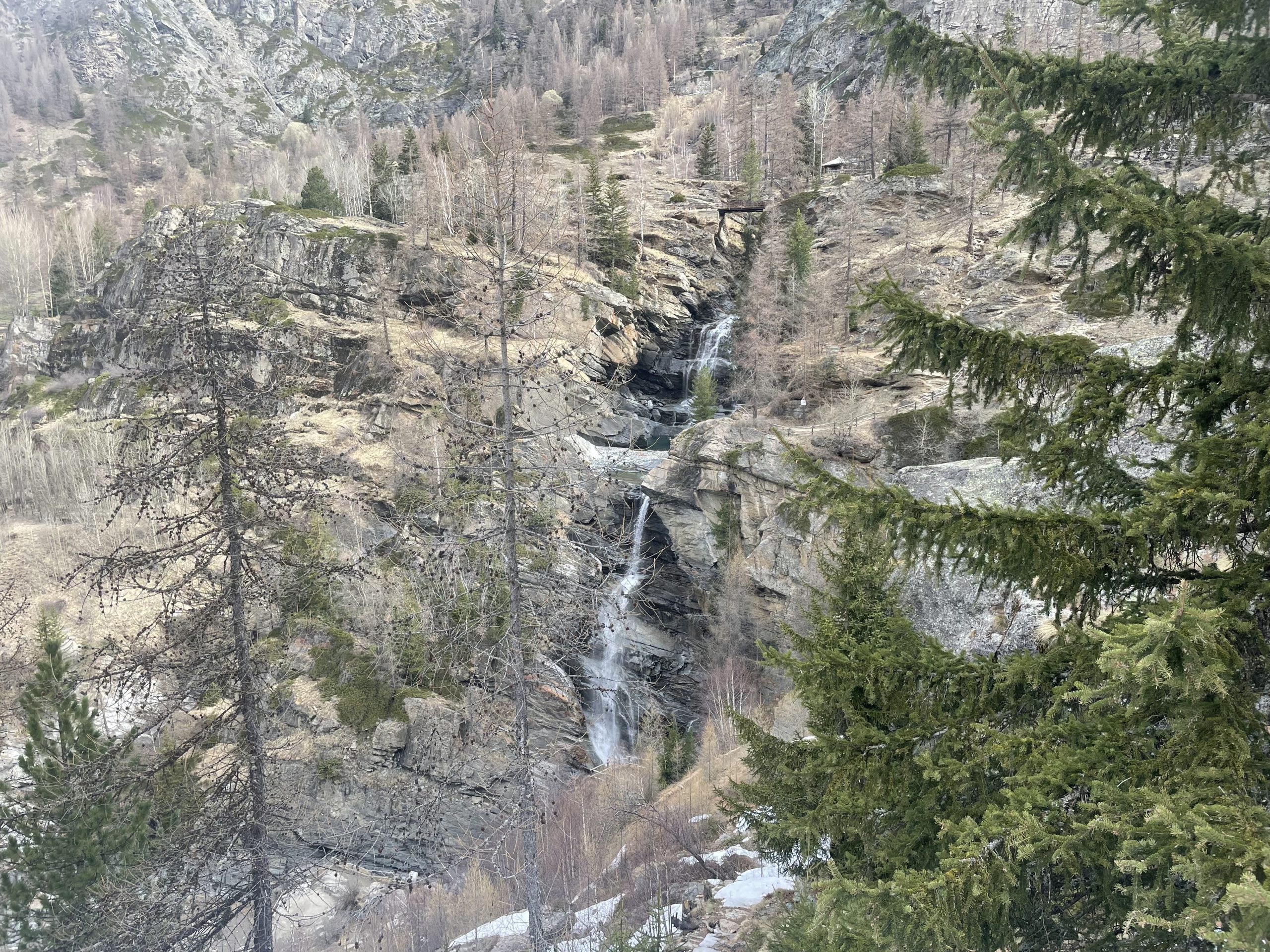 The snowy mountains around us were beckoning so we picked up our snowshoes and microspikes and embarked on a walk up into the hills. Our first stop were the Lillaz waterfalls which are pretty but weren’t looking especially spectacular – probably meaning that not a lot of snow was melting further up stream.