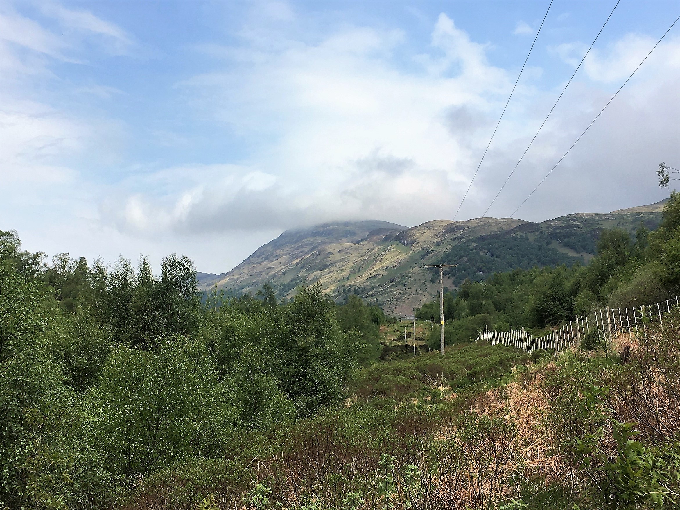 While we were here we also wanted to tick Ben Lomond off our list of Munros. Somehow we chose the only day when it rained to take on the mountain. The forecast had been for early morning rain so we waited for it to dry up before we left the campsite. We were cycling to the carpark at the start of the walk to avoid the risk of finding a car park too full for Bertie. So we set off along damp roads the 9km to our start point.