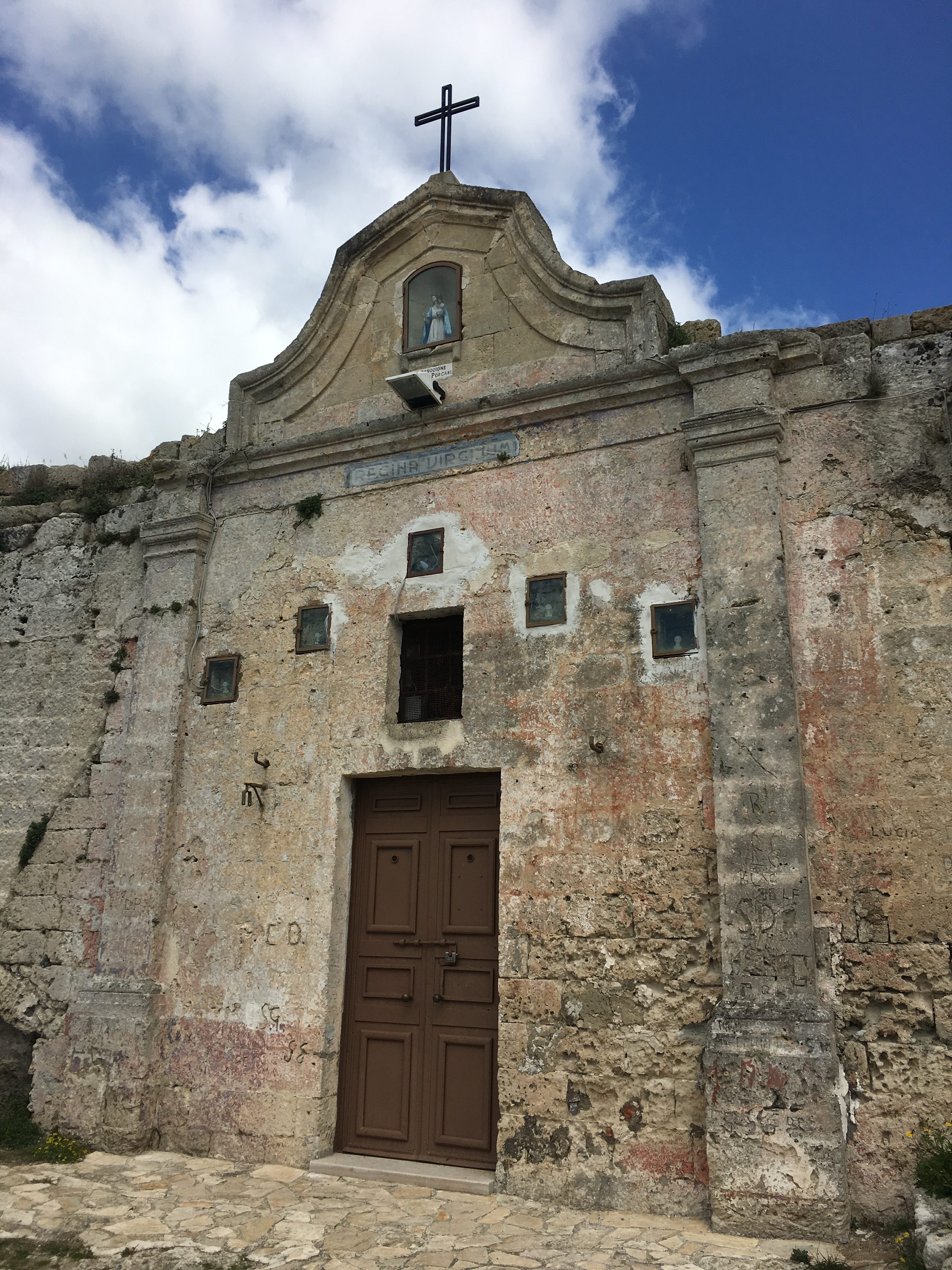 Across the gorge from the city the land is less touched by human development, here there are occasional rock cut buildings, including many Rupestrian Churches which are the other reason that the area is a UNESCO world heritage site. It was here we decided to stay, in a camper stop associated with the visitor centre. This was the perfect compromise for us, a spot in barren limestone heathland that feels in the middle of nowhere but is in walking distance of the city – or so we thought.
