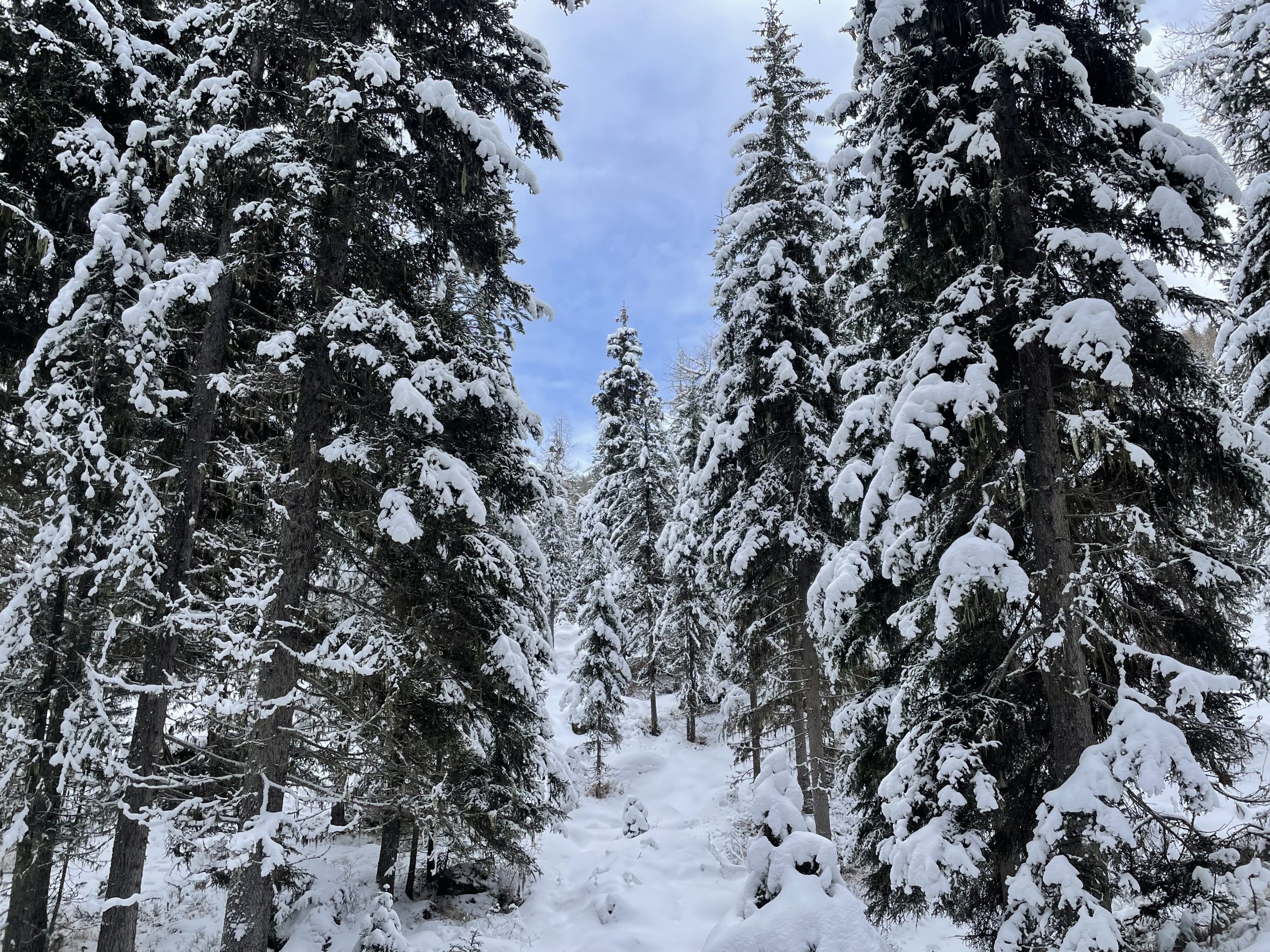 We thought we had managed to time our journey before the forecast snow arrived, but half way up the Val d’Ayas it started to snow steadily. We were watching vehicles descending from the resort and the layer of snow on passing cars was getting thicker. The bare roads became slushy, gathering snow at the edges, with clear tracks where people were driving. Imperceptibly a line was crossed and the snow started to accumulate on the whole road. Once that started to happen it felt as though it would never stop.