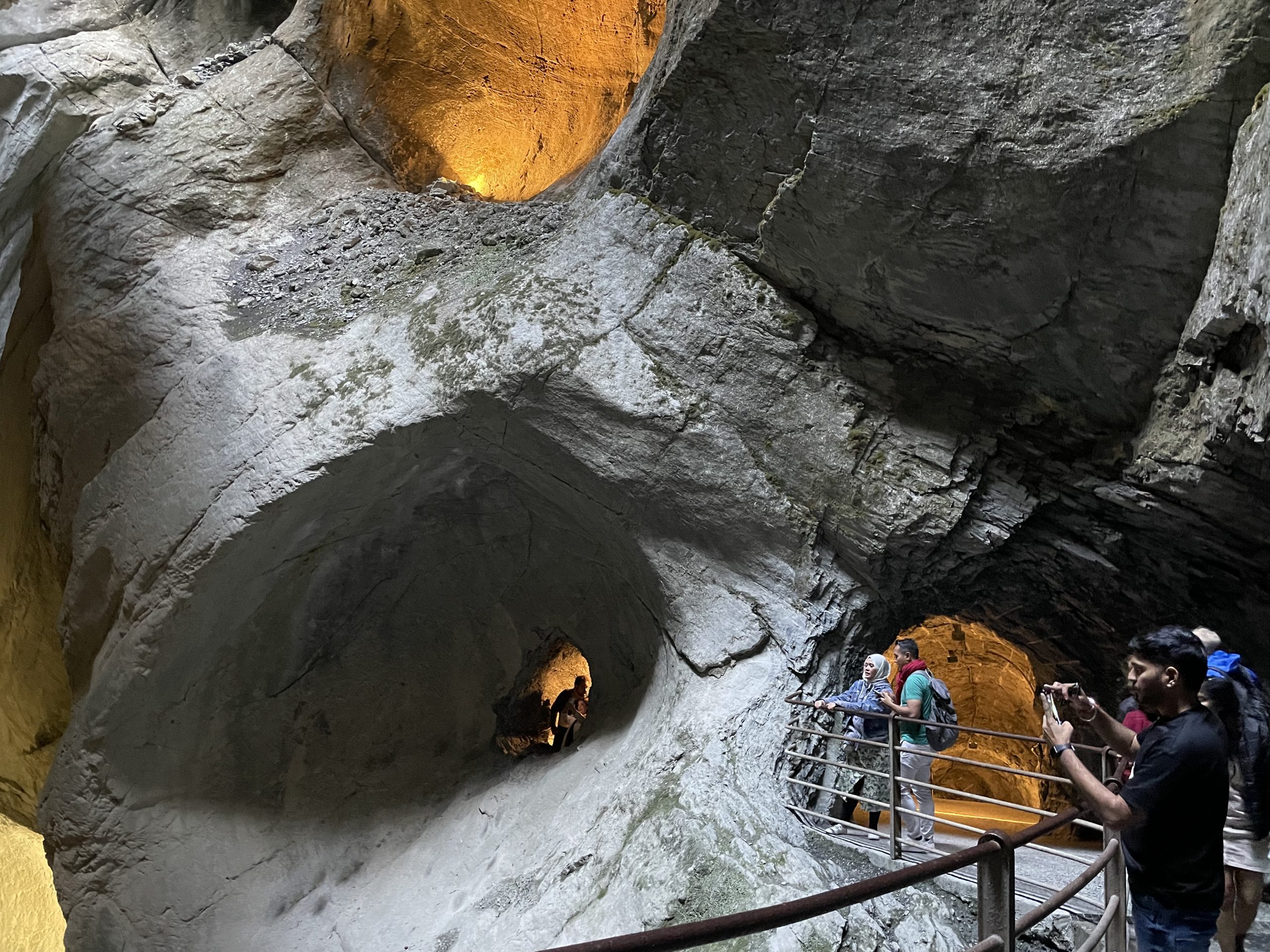 The summer had been so dry that it was no surprise they looked so insignificant. In the spring, fed with meltwater, I imagine that descriptions such as thunderous and tumultuous might be used to good effect but the only waterfall that deserved such epithets on our visit was (were?) the Trümmelbach Falls. A series of spectacular cascades in a deeply cut narrow gorge. It’s been heavily commercialised but is worth visiting. There are a lot of steps but many of the cascades are also accessible by lifts.