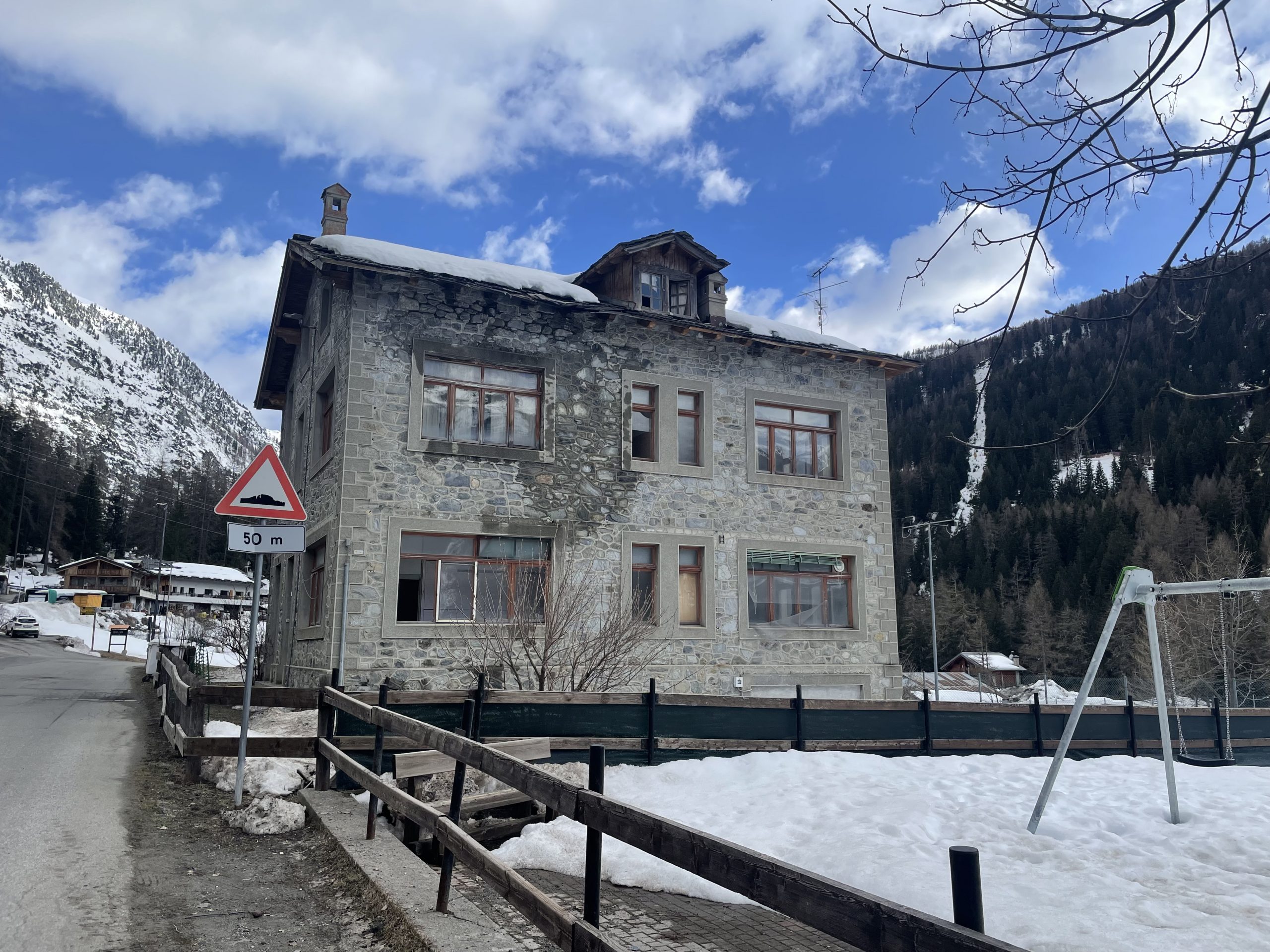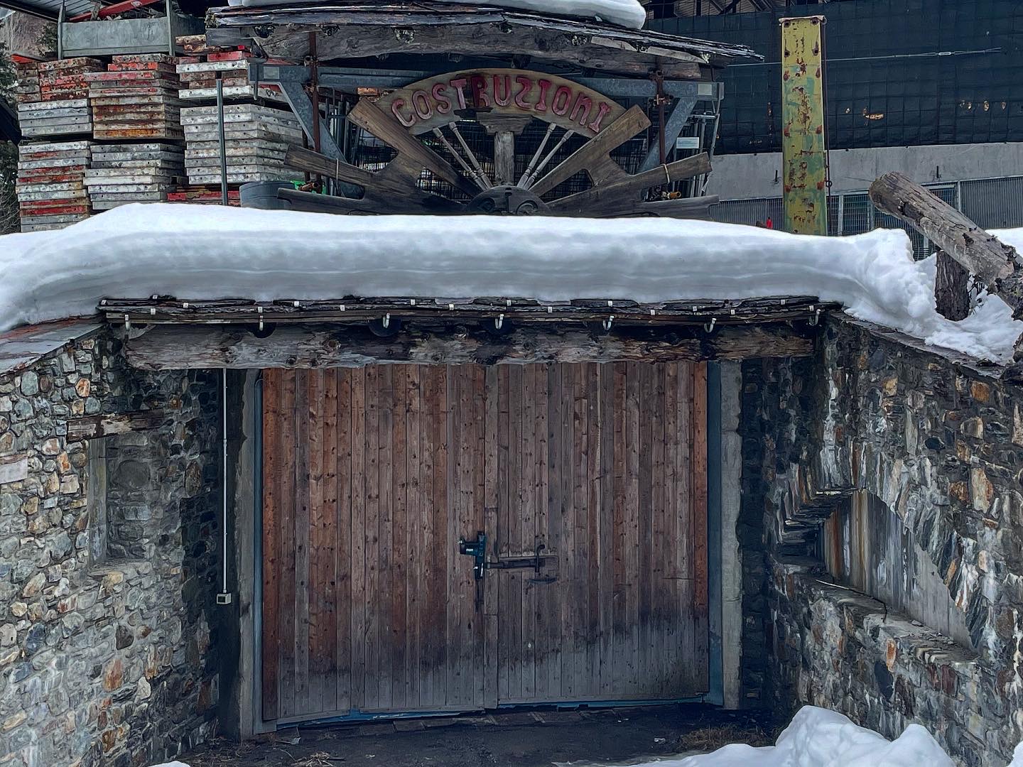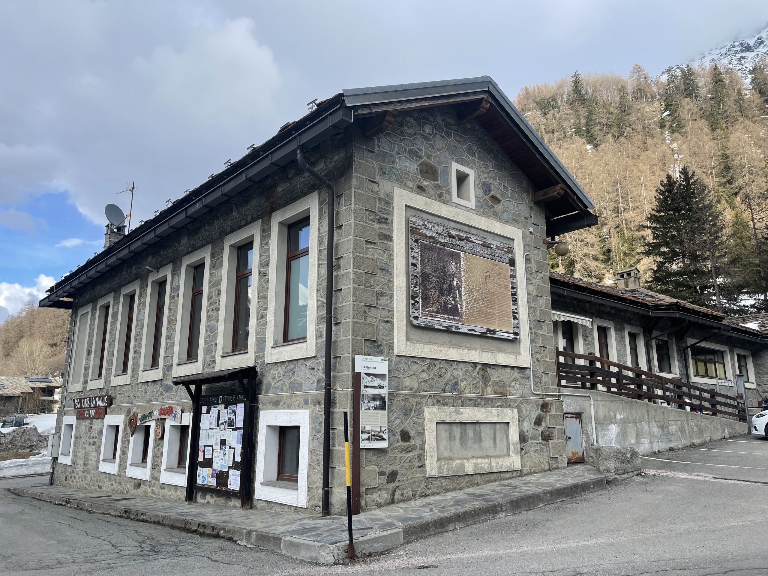 I mentioned a bit about La Thuile’s mining history in our last post from thsi location. Walking around the village we found more evidence of the mining heritage. Many of them look sturdily built but are still falling into disrepair. Outside one was a picture of Mussolini visiting in congratulatory style.