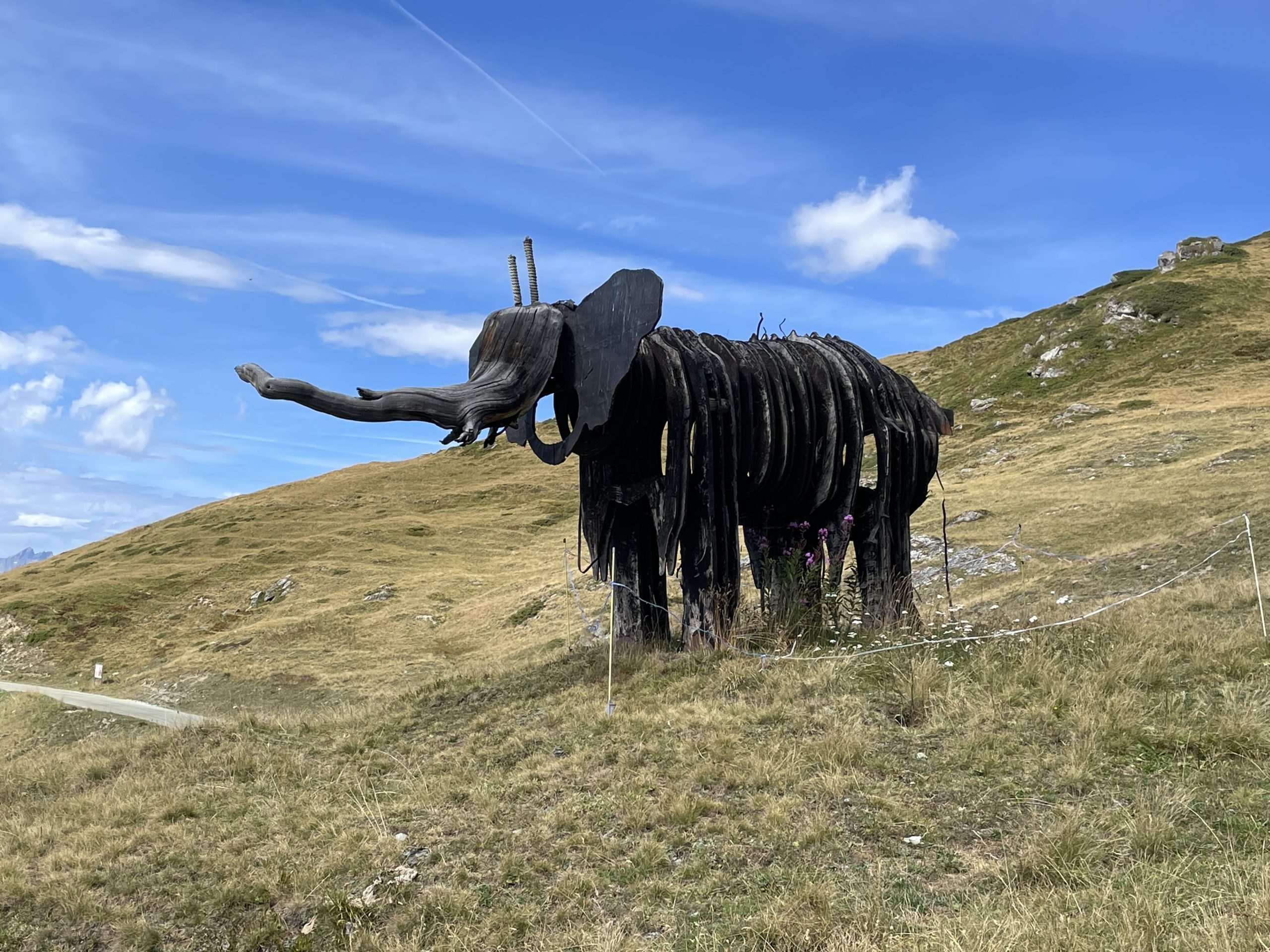 The scenery all around us was amazing with the glacier clad mountains of the skyline accompanying our descents, and there were a few interesting sculptures on the way down too. I wondered if they would be covered with snow in ski season.