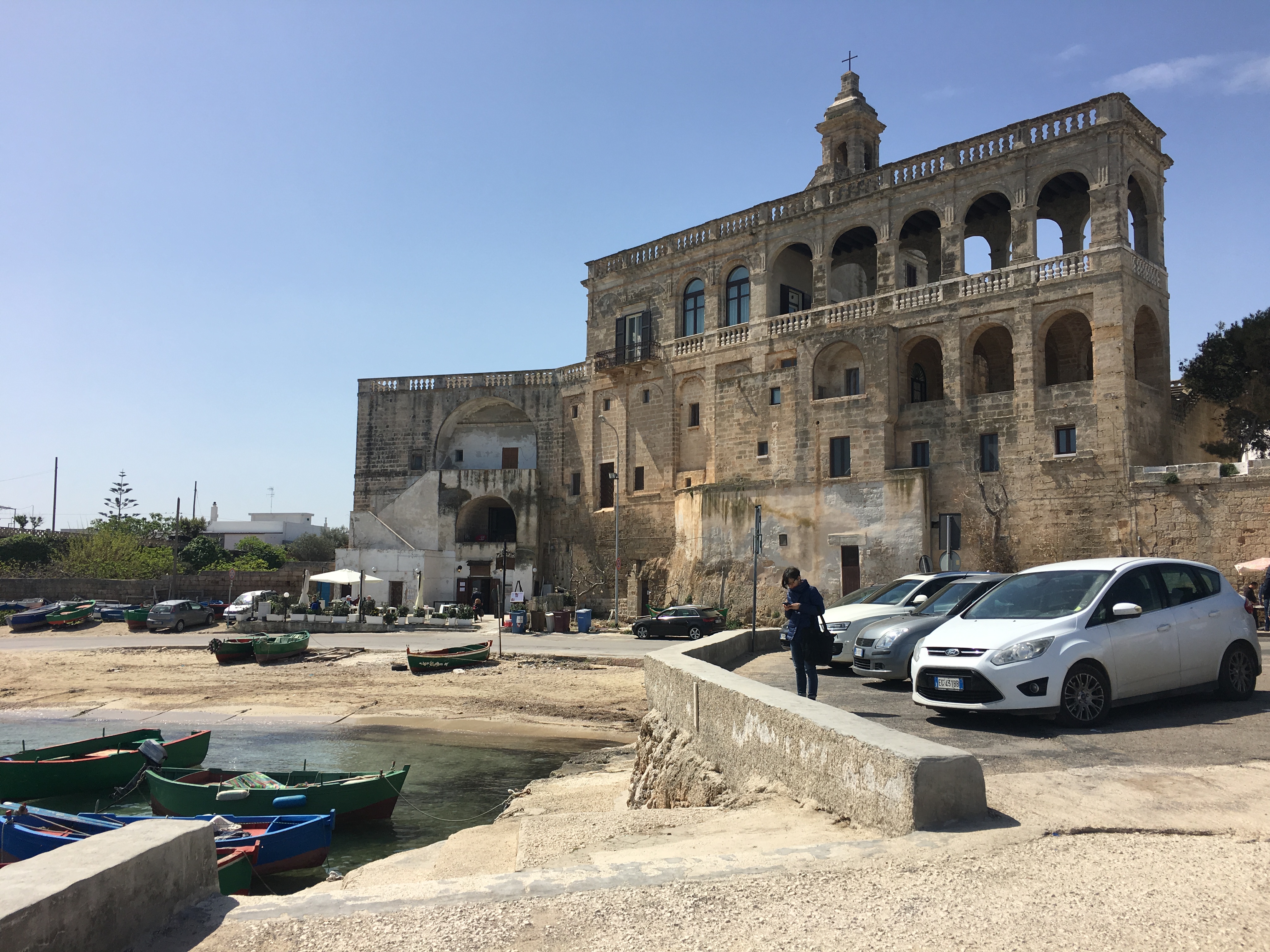 Polignano had been a good choice of venue for a short break, we had a lovely little apartment just outside the old town, with a sunny and safe terrace and bedrooms with vaulted stone ceilings like little caves. The town doesn’t have any distinctive tourist attractions, but it does have a pretty little old town that is almost entirely given over to tourism and a very attractive cove of a beach that must be hell in high season. The majority of the seafront is a low cliff ten or so meters above sea level where they hold Red Bull cliff diving competitions. We only saw a couple of lads taking the plunge while we were there, the water was cold and deep and the air temperature not yet warm enough to entice sane people in for more than a paddle.