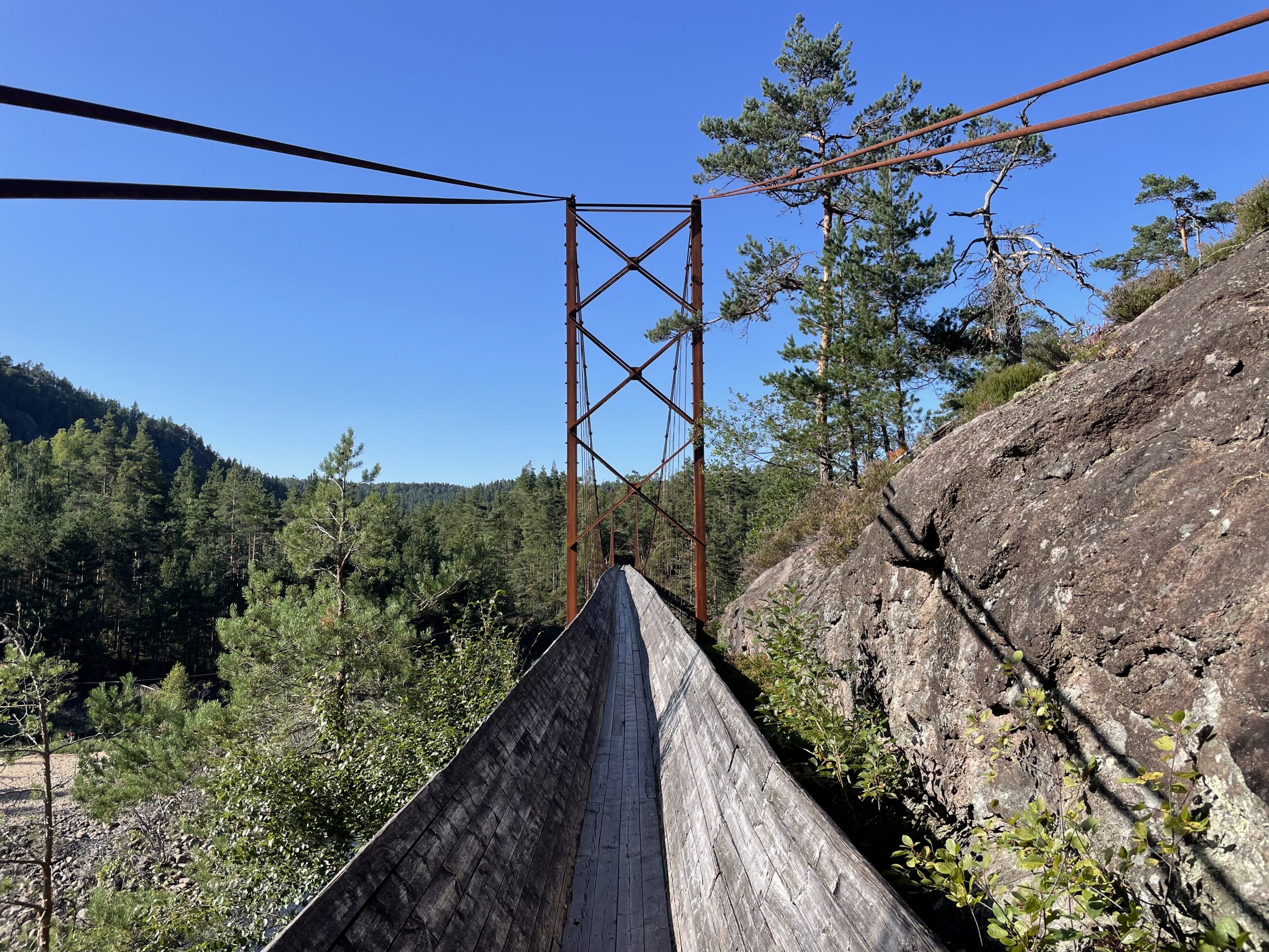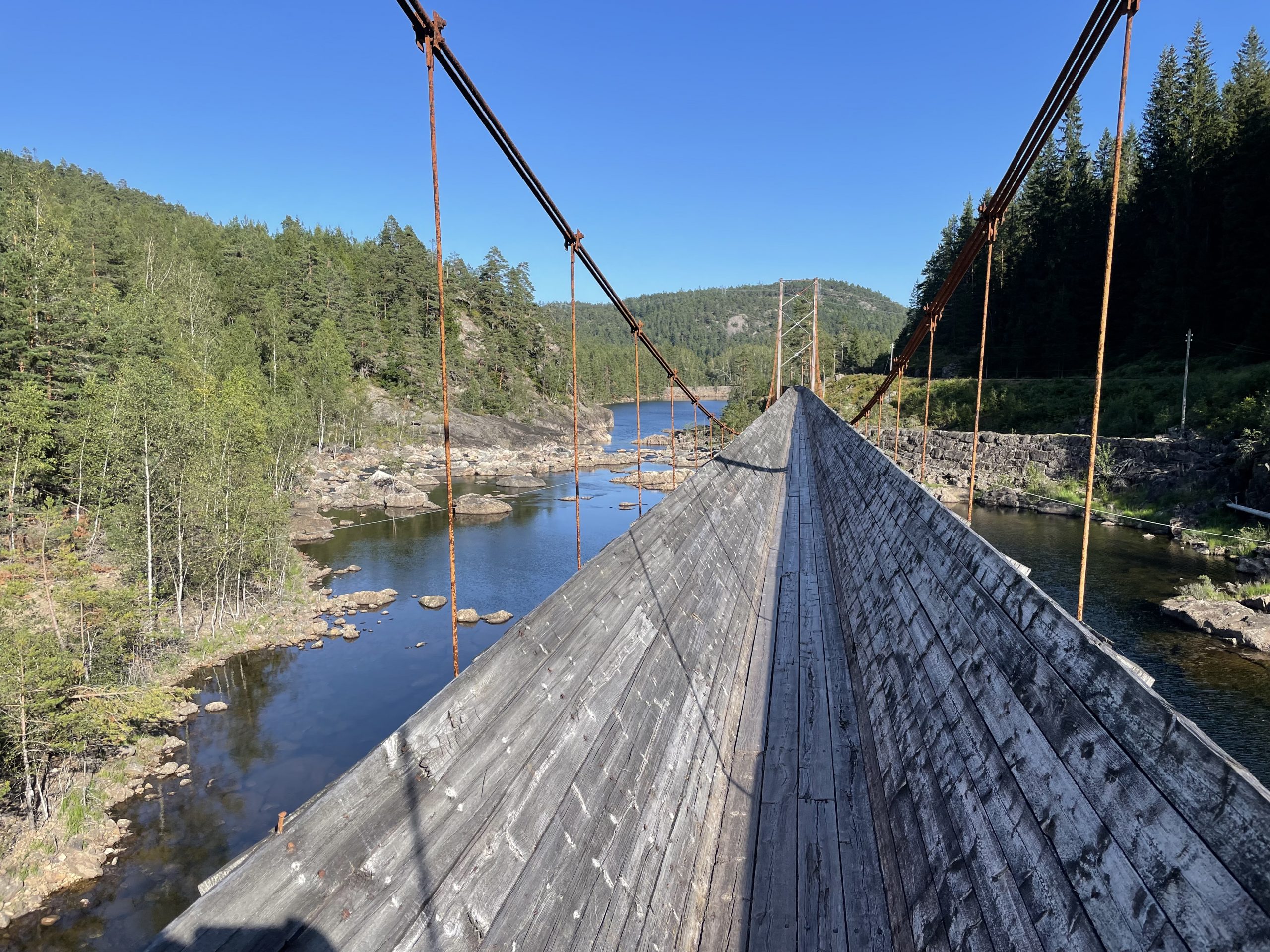 Tømmerrena literally means ‘timber gutter’ in Norwegian and is an old lumber flume that was used to transport timber downriver. It was built in the 1950s when the powerstation diverted water from the river, creating impassable rapids. The flume was built to a steady gradient, using suspension bridges and tunnels where necessary. By the end of the 1970s it was no longer needed (I assume a road had been built) and was destined for demolition. Someone had the foresight to preserve it instead, and now the water has been diverted away from the channel and you can walk along it for the 4km from Venneslafjorden to Kringsjådammen.