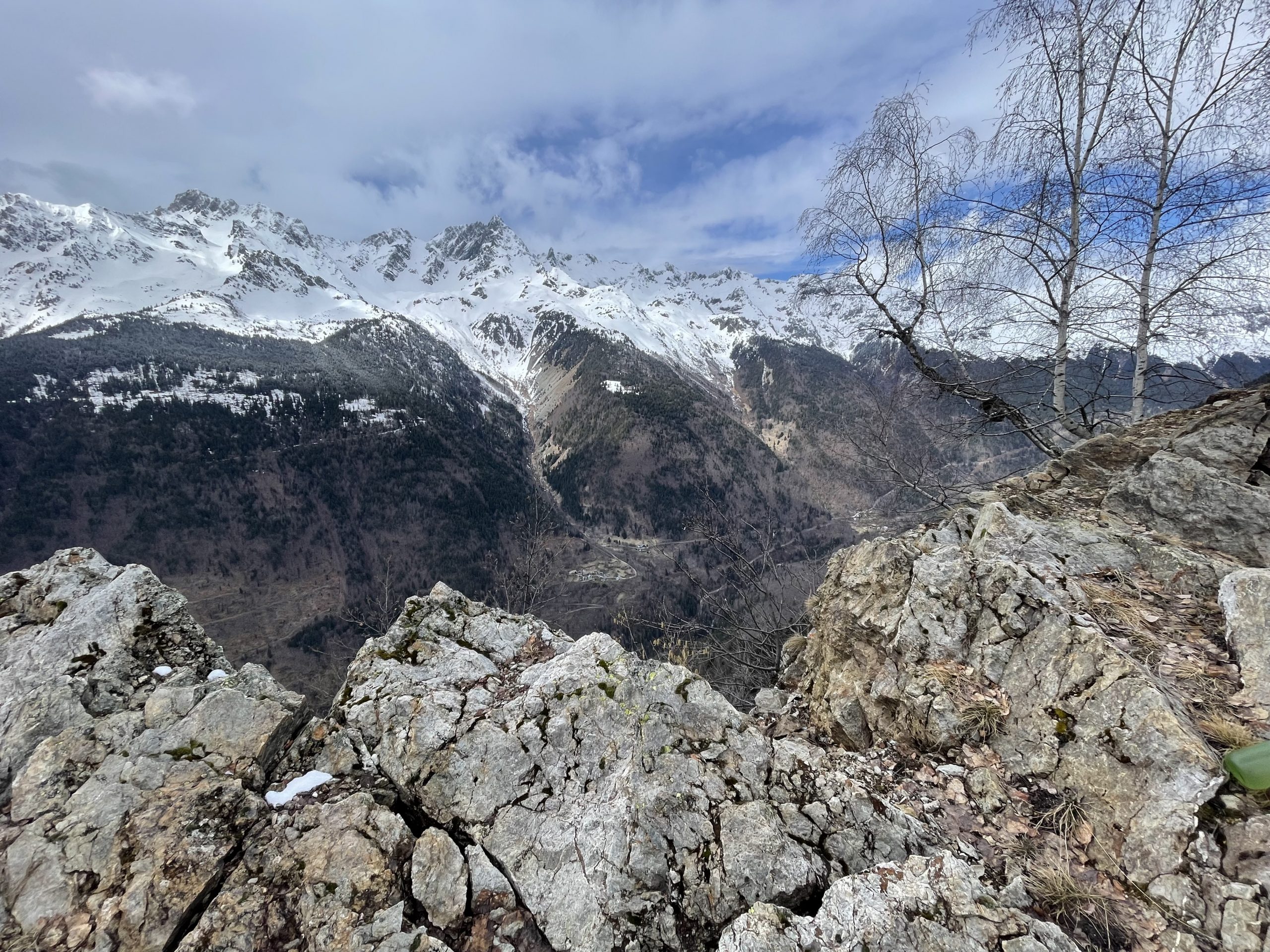 The new snow didn’t linger for long. The following day I was working and by the Wednesday the sunshine was back out and conditions weren’t looking great. The south facing mountains were looking lovely though, dotted with enthusiastic spring flowers taking advantage of the mild conditions. We followed their example, the avalanche danger warnings had been removed from the paths and we were ready for a walk.