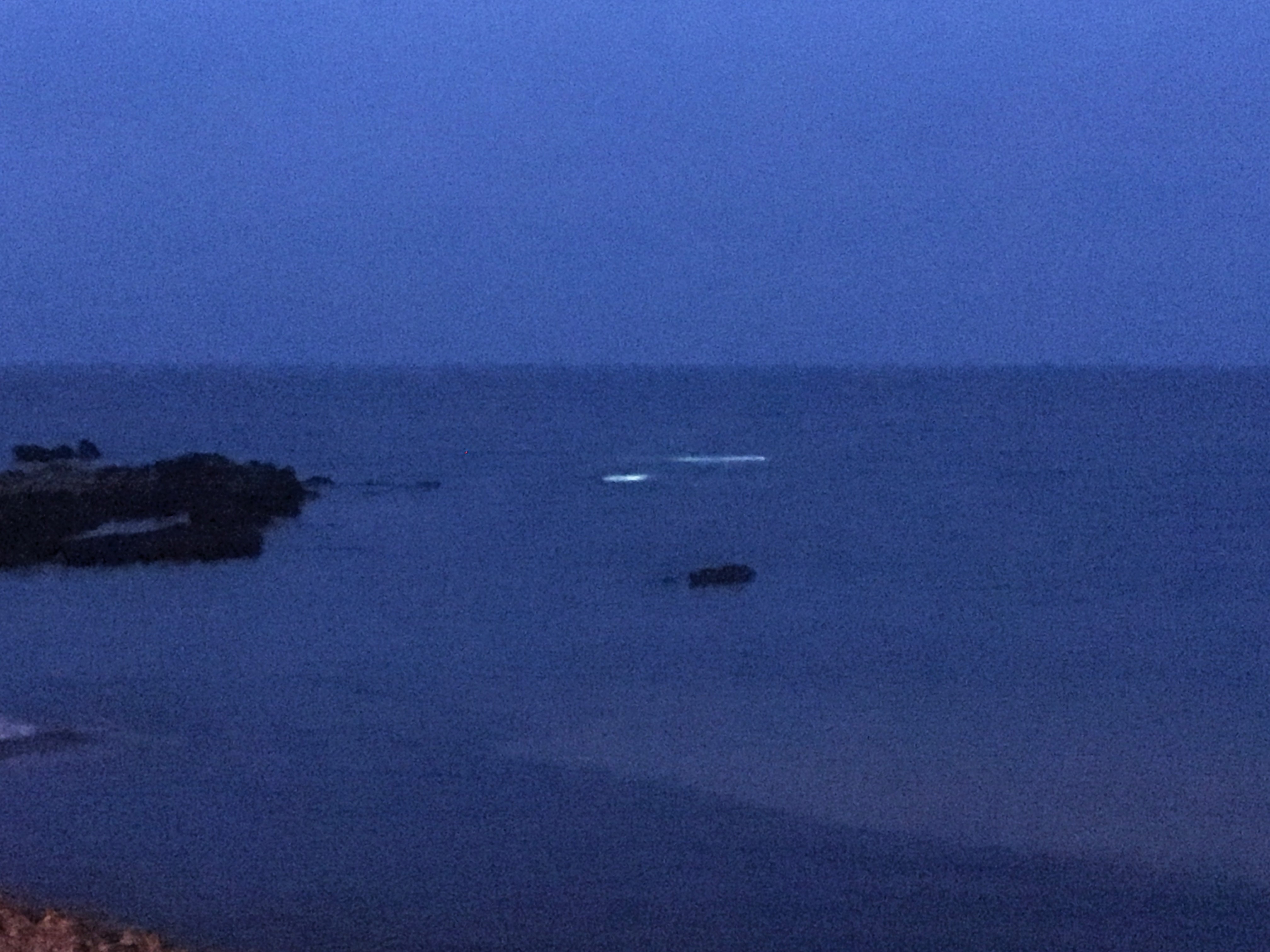 That evening we were treated to a mysterious spectacle of fishermen and snorkelers using bright torch light to hunt for sea creatures. Octopus maybe? Some of them were carrying spear guns with multiple spikes on the end, others were using glass bottomed trays to spy under the water. Whatever they were doing it provided an evenings entertainment.