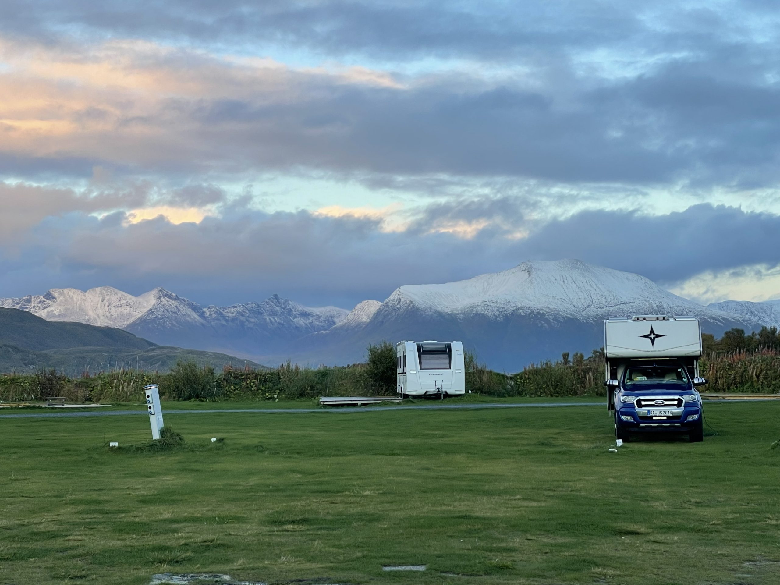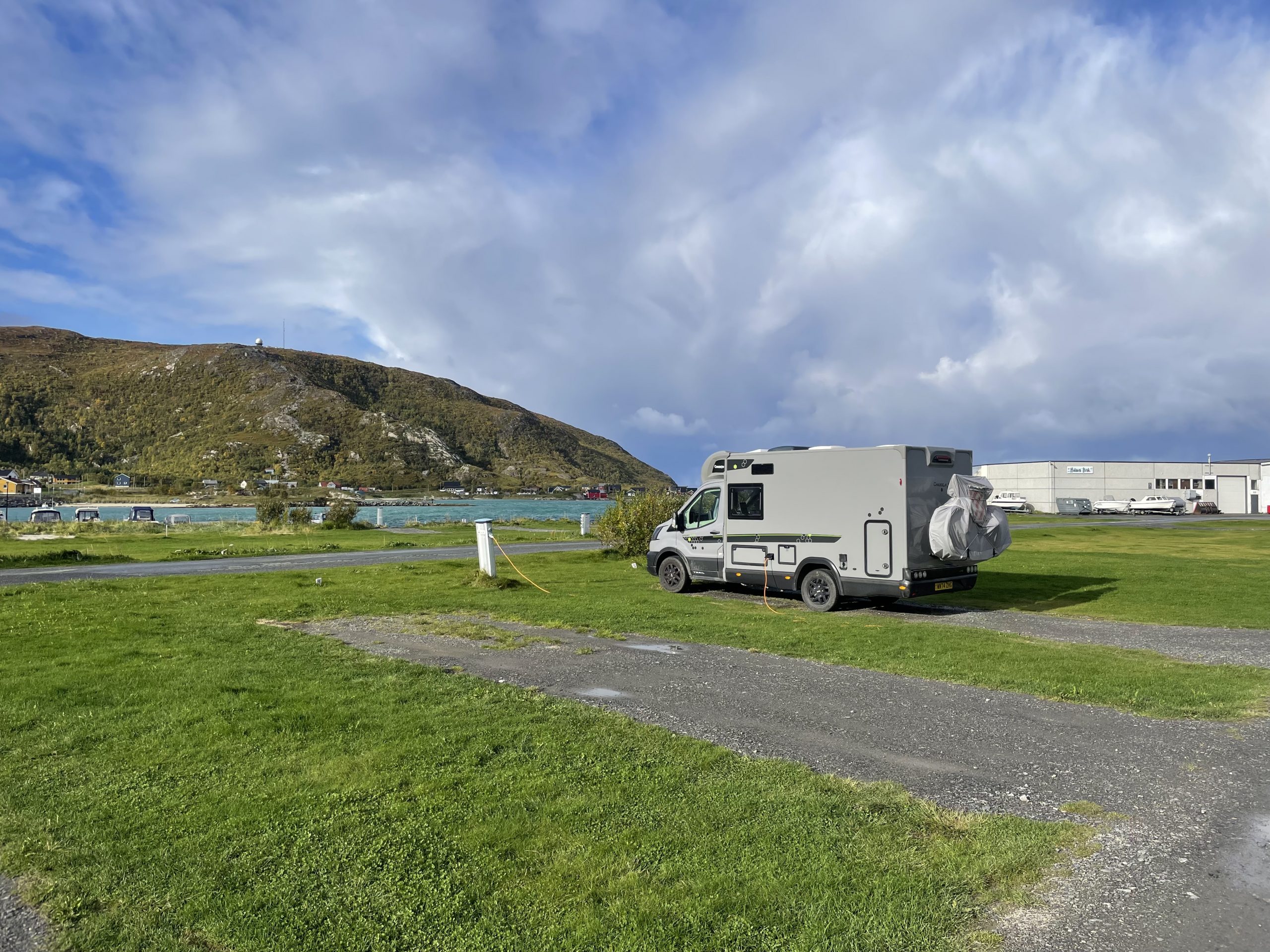 Our park-up for the night was Sommarøy Camping and Marina which sits centrally in the islands just before the bridge to the higher and more rugged Hillesøya. It’s a campsite really with facilities including toilets, showers, laundry and kitchen, so the cost of 250 NOK with an extra 50 NOK for electricity seemed reasonable. We paid at the terminal which gave us a code for the toilet block, but when we explored we found out that showers came at an extra charge and required coins. We decided to use our on-board shower given that our hot water was being heated with the electricity we had already paid for and getting coins was going to be a bit of a faff.